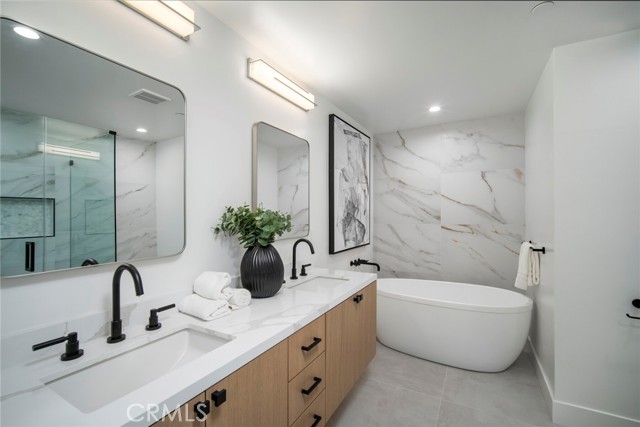 Welcome to this stunning newly completed residence/duplex situated in a highly desirable location on Balboa Peninsula in Newport Beach. This exceptional property offers the perfect blend of contemporary design, modern aesthetics and functionality, making it an ideal opportunity for both homeowners and investors alike. The front owners unit boasts a spacious layout of 1812 sq. ft. with 3 bedrooms with one that opens onto a generous bright and sunny deck. The interior features include beautiful French oak flooring that adds warmth and elegance to every room, rift cut white oak cabinets providing a sleek and modern touch, while the stainless appliances and Sile Stone counters offer both durability and style. The secondary unit is equally impressive, offering 1067 sq. ft. of open concept living with 2 bedrooms, with a generous bonus room that may be used as a media room, study, or an additional bedroom which opens onto a spacious rooftop terrace. The unit may function as guest quarters or as income opportunity providing an inviting space for owners or tenants who will love to call it home. The exterior features a sleek and stylish facade, a standing seam metal roof system and sliding doors graciously opening onto the front patio and balcony welcoming natural light to the interior. Whether you’re relaxing on the balcony or enjoying the nearby beaches, you will benefit from the convenience of being just a short distance away from the boardwalk, sandy beaches, world class surf, picturesque Newport Harbor, and a multitude of vibrant waterfront restaurants and a variety of entertainment options. This home truly offers the ultimate coastal lifestyle.
