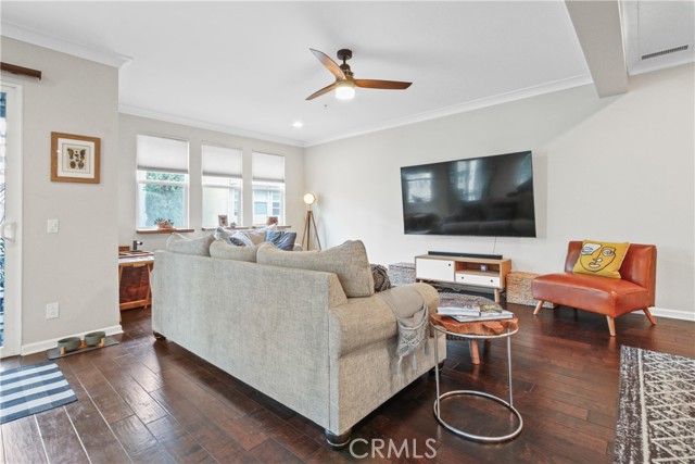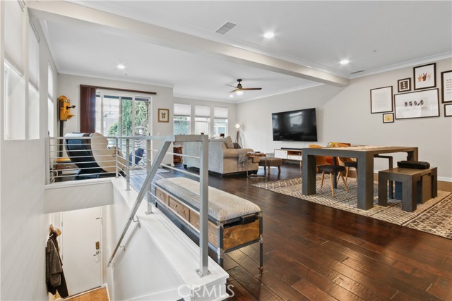 Welcome home to The Park at City Place. This end unit is bright and airy. Spacious floor plan with great room and balconies. LVP flooring and upgraded carpet throughout. Luxury touches include granite counters, custom window treatments, ceiling fans, custom built-ins, stainless appliances and recessed lighting. The master suite is located on the 3 level giving lots of privacy. Close to 5, 57 and 22 freeways. Walk to dining and shopping. This floor plan is rarely on the market.