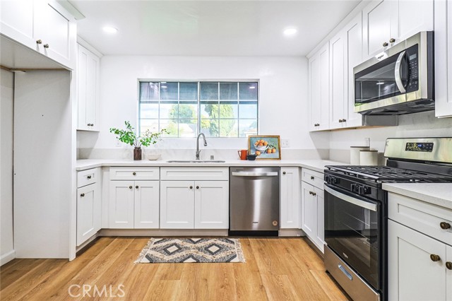 New AC Installed. This remodeled 3 bedroom 1 bathroom home in the highly desirable city of Buena Park has a spacious layout with an updated kitchen with new shaker style cabinets, stainless steel appliances, quartz countertops, and black finishes. Spanning over 1,006sf in size, the entire property has been newly painted with new laminate flooring, recessed lighting, new AC system, ceiling fans & fixtures, a full size bathroom in the hallway, and an impressive sized living room that leads to the covered patio area.rnOn a 7,029sf corner lot, the entire front and back yard is full of exotic and ethnic fruit trees, with a nicely done lawn & landscaping, and ample yard space throughout to build out the perfect backyard. The single car garage offers washer/dryer hookup, new garage opener, and a tremendous opportunity to expand the living space and/ or use as a multipurpose area. Terrific Location in Orange County near 91 & 5 freeways, close to Knott’s Berry Farm, Portos, Medieval Times, The Source, and tons of restaurants and shops.