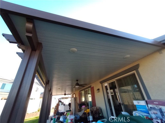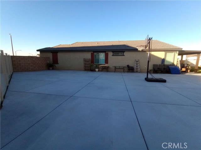 Are you seeking a home with a large backyard for that BBQ and grilling party? This home comes complete with a paved banquet-size backyard. There is also a well-maintained lawn area for your pets or just relaxing. And, of course, the covered patio with ceiling fans running the full length of the house has been installed in the backyard. All the window blinds are installed. The kitchen is equipped with a sink island and stocked with upgraded white cabinets. The home kitchen opens up into the living room that creates an open concept area for all to gather and enjoy. This four bedroom, two and half bath home has solar panels. No HOA. And located across the way from Rancho Verde High School.