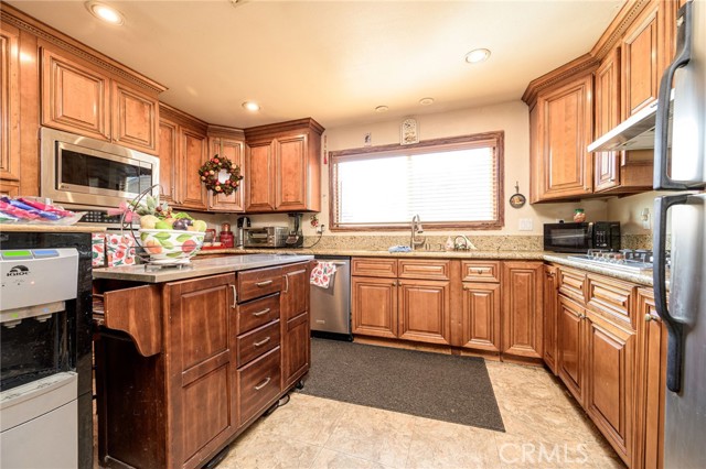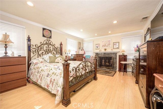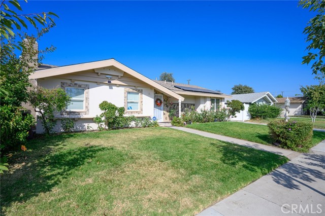Sweet warming desirable location home ! Well maintained 4 bedrooms 3 bathrooms with a permitted spacious recreation room is definitely home many home hunters never want to miss! A Short distance to Disneyland and short distance from The Angels Stadium, The Honda Center, The Outlets of Orange, The Anaheim Packing District, The Promenade, The Muzeo Museum, and close to a variety of other restaurants and shopping. This lovely home features maple kitchen cabinets and granite countertop. Stainless steel appliances. Enjoy the low monthly electricity bill with the Paid Off Solar, newer dual pane windows, 200 amp panel, A/C system, F.A.U. in attic, newly installed insulation. Copper plumbing .Elderly and families loves most : 2 master bedrooms, one w/Marble Fireplace! Polished Travertine in entry, halls, baths, kitchen. Bamboo flooring in family room and Master. newer wood flooring in all bedrooms with mirrored closet doors. Newly textured and painted interior. Recess lighting throughout. Stylish crown molding in most rooms. Arched entry to dining room w/chair molding. Newer big base with case moldings and six panel doors. Used brick front porch w/new front door w/brass handle. Laundry room inside. Slider to the permitted spacious recreation room cover in rear and was approved previously as a HOME DAY CARE for up to 8 kids. Spacious front/back yards landscaping with timer sprinklers. Block wall surrounds backyard. Detached garage with ample space along with white vinyl fence down driveway to automatic sectional door. Newer exterior paint and plenty of fruit tree in the backyard. Excellent and quiet neighborhoods with quick access to the 5, 22,57 and 91 fwy. This is a home you must not miss ! Act quick !