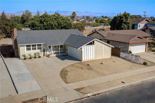 Charming, remodeled, single-level 3/2 1288sf home in an established Santa Maria neighborhood on a large, 7405sf lot featuring a NEW ROOF, leased SOLAR and tons of potential. With RV parking, fully fenced backyard and 2-car garage you will have plenty of room for cars, pets, kids and entertaining. The home’s features include laminate flooring throughout, neutral paint colors, lots of windows for a light and bright feel, central heating and wood fireplace with a gas starter. You will love the French doors from the dining room leading to the backyard that is ready for your imagination and the remodeled kitchen has laminate countertops, decorative tile backsplash, stainless appliances including Frigidaire double oven, new sink and kitchen faucet, white cabinets w/ upgraded doors, breakfast bar and another door to backyard. Down the hall you will find lots of storage, linen closet, remodeled guest bathroom w/ walk-in shower, pedestal sink, tile floors and 3 bedrooms, one currently being used as an office and another being the primary suite with large closet, lots of windows and remodeled primary bath w/ walk-in shower, pedestal sink and tile floors. Fantastic starter home! Close to medical facilities, parks and Boomers!