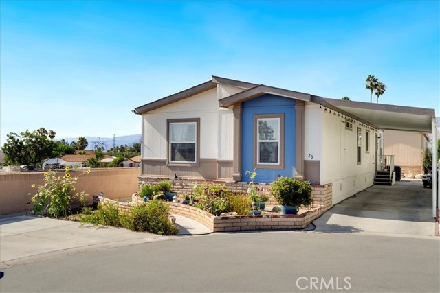 Welcome to 2140 Mentone Blvd #26, Mentone, CA 92359!rnThis exquisite turnkey mobile home offers a perfect blend of comfort, style, and convenience. Situated in a desirable location, this 3-bedroom, 2-bath residence is ideal for anyone seeking a tranquil retreat in the heart of Mentone. As you step inside, you’ll be greeted by a bright and spacious living space, adorned with modern finishes and an inviting atmosphere. The open-concept layout seamlessly connects the living area, dining space, and kitchen, providing a perfect setting for entertaining guests or creating lasting memories with loved ones. The three well-appointed bedrooms provide plenty of space for relaxation and privacy. The primary bedroom features an en-suite bathroom for added convenience and comfort. The additional bedrooms are versatile, making them suitable for guests, a home office, or a playroom. But the true gem of this property lies beyond its walls. The mobile home community offers an array of exceptional amenities to enhance your lifestyle. Take a refreshing dip in the sparkling pool on hot summer days, or let your children enjoy the playground, creating cherished memories with newfound friends. The picnic area invites you to savor the outdoors and relish the picturesque surroundings. Located close to shopping, dining, schools, and parks, this residence ensures that you are never far from everything you need. With easy access to major highways, commuting to neighboring cities is a breeze.