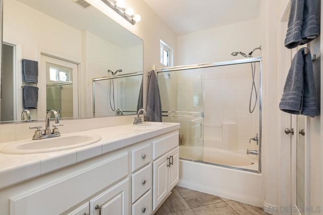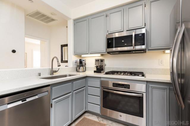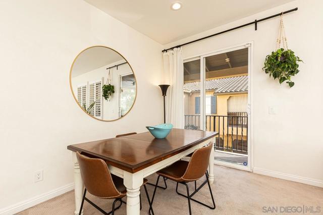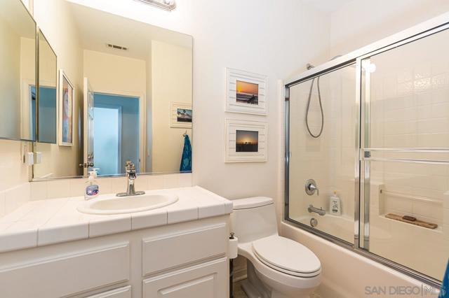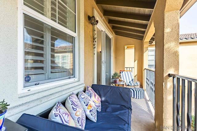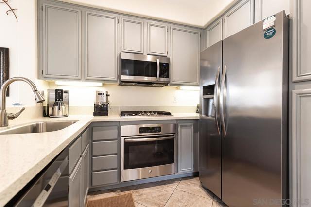 This townhome is in Torrey Highlands, the Monaco community. The home features a quiet location, natural light, and a great layout with a split floor plan providing privacy. All the living area is on a single level, so it feels very spacious, leading into your private balcony. There have been several upgrades and updates in the last few years. See the additional comments for the list. You have a private garage with direct access to the unit and a separate designated space. Monaco features a pool and spa and is just steps away from Torrey Meadows Community Park, Westview High School, and Mesa Verde Middle School. The elementary school is Willow Grove. Located in the award-winning Poway Unified School District, visit their site for school boundaries. Here’s a list of upgrades and dates per owner. Tile flooring (in entry, kitchen, and master bath), an updated kitchen (Caesarstone countertops, stainless steel refrigerator, dishwasher, microwave, deep sink with faucet, painted and revamped cabinetry). Lighting- all new LED (energy efficient) lighting in kitchen and dining/living room. The dining room is on a dimmer—beautifully updated fireplace. The primary bathroom has an updated faucet and shower head. Approximate dates of upgrades: Water heater 7/2022, A/C 9/2021, Microwave 8/2021, Dishwasher 4/2021, Shutters 4/2021, Toilets 11/2021, Dryer 1/2020, Washer 2/2019, Oven 9/2017, Fridge 10/2015.