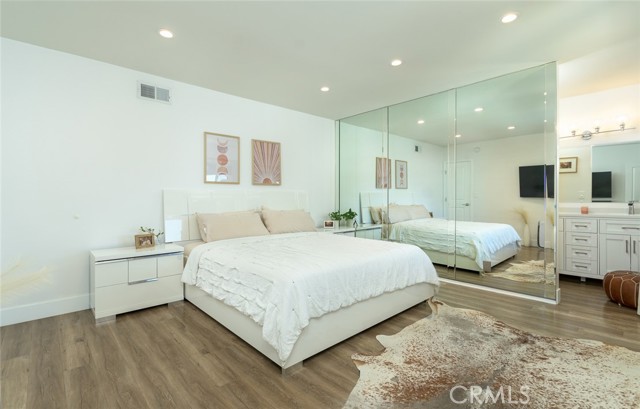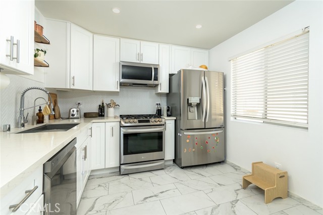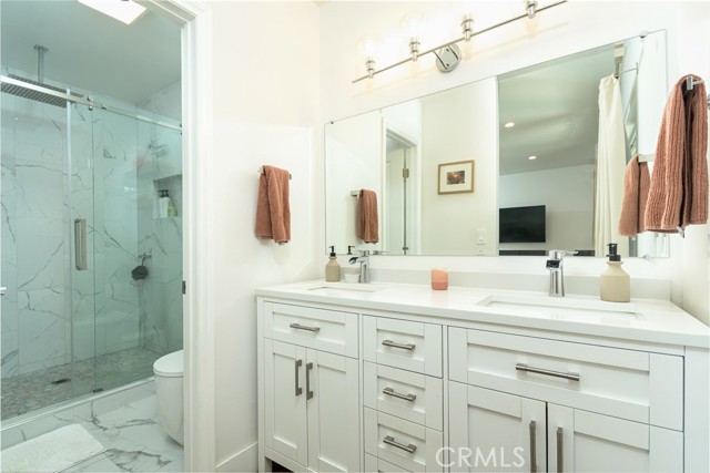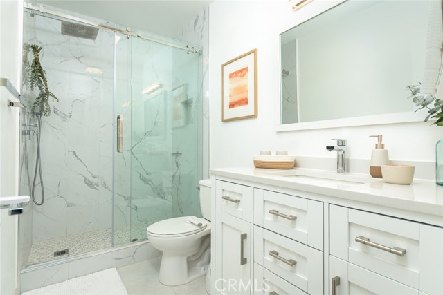 Tastefully remodeled townhome in Cabrini villas.rnThoughtfully designed interior, featuring an open floor plan connecting the living room with fireplace, dining, and kitchen areas and a remodeled guest bathroom. rnThe kitchen has been completely renovated with quartz counters, beautiful tile, and stainless steel appliances and recessed lighting. rnUpstairs are the three bedrooms. The primary bedroom is a true retreat, complete with a walk-in closet, and a beautifully remodeled bathroom with dual sink, walk-in glass shower, custom tile and quartz counters and beautiful views. rnTwo other bedrooms and additional upstairs bathroom have been remodeled and are in immaculate condition. rnThe garage level of this home offers a bonus room with air conditioning that’s perfect for a home gym, storage, or office, and there’s also a direct access private 2-car garage. rnAs part of the Cabrini Villas community, you’ll have access to an array of amenities, including pools, spa, and tennis courts, parks, playground, basketball court and recreation room.