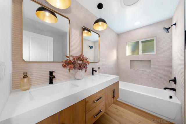 Welcome home to this beautifully renovated, custom designed light and bright four bedroom, three bathroom home with chefs kitchen. Upgrades include new luxury vinyl flooring throughout, fireplace, upgraded LG appliances, new roof, new dual pane windows, new tankless water heater, new electric and plumbing. There is ample parking with your finished two car garage and additional driveway space! Additional features include: LED lighting, new waterproof acrylic stucco, low maintenance landscaping, and outdoor sitting areas. Located close to UTC, beaches, restaurants, shopping, and easy access to 52, 5, 805 & 163 freeways make this centrally located turn key home a must see!