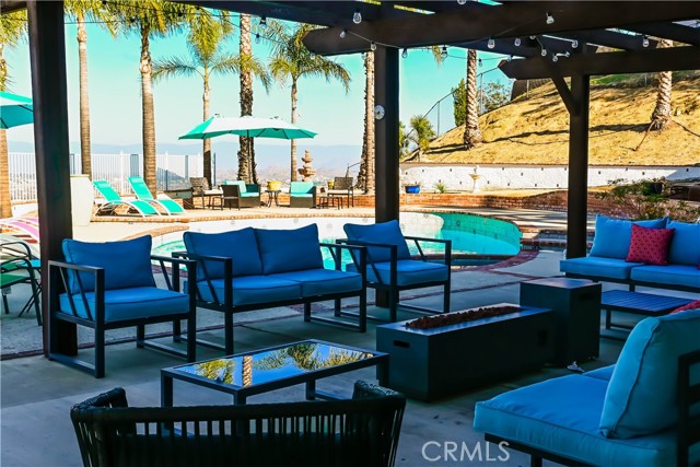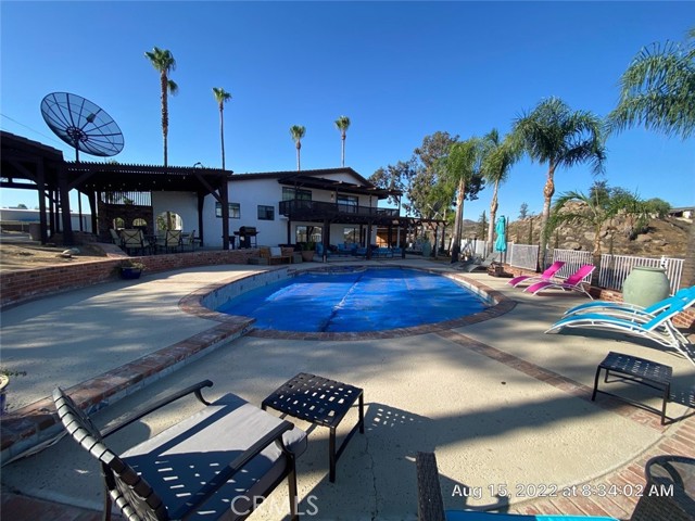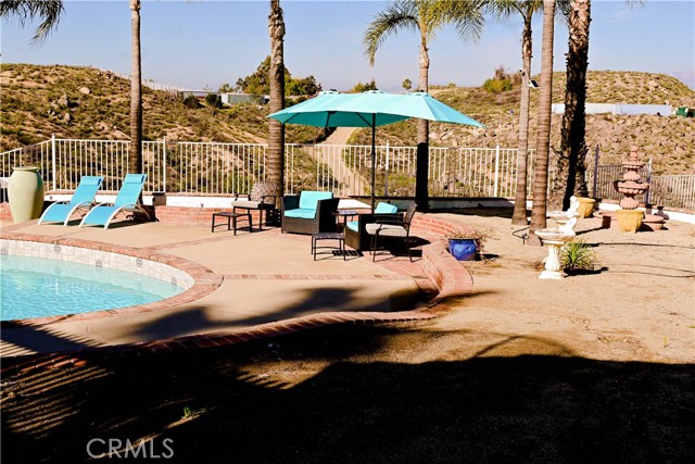 Newly Refurbished almost 3,000 sq. ft. of living space and sitting on a hill with views as far as eyes can see on almost four acres of land. Located in the much desired area of Lake Matthews in Riverside County. Close to both Freeways 15 and 215, yet far removed enough for the serenity of a hill top residence overlooking the city of Riverside and views as far as Rialto, Fontana Ontario and the resort mountains. 4 bedrooms 3 baths, gorgeous pool. Bring your horses and all your other toys. Zoned for animals and located on a quiet cul-de sac. New kitchen, custom cabinets, custom wood floors. Fenced with remote control front gate. Olympic size pool two car garage, four patios and over 32 palm trees. Plenty of space for RV parking, boat and other toys.