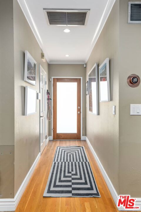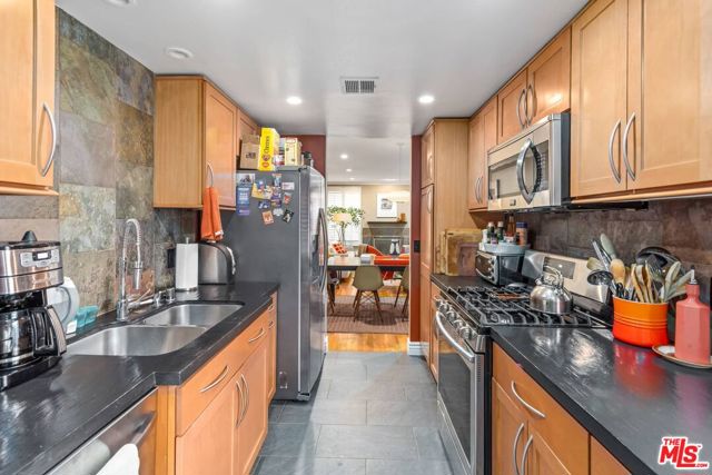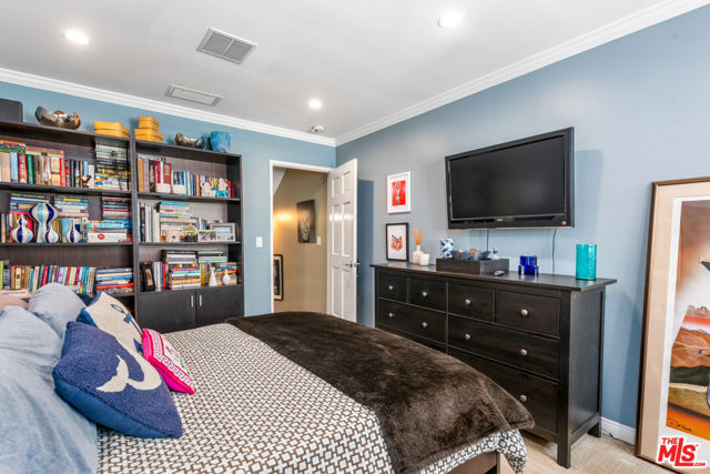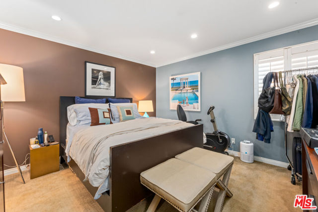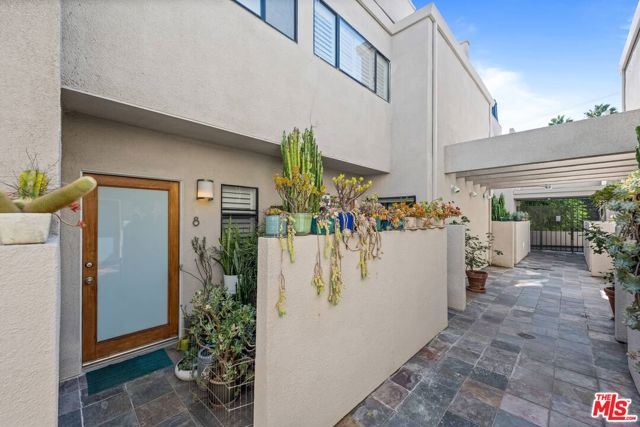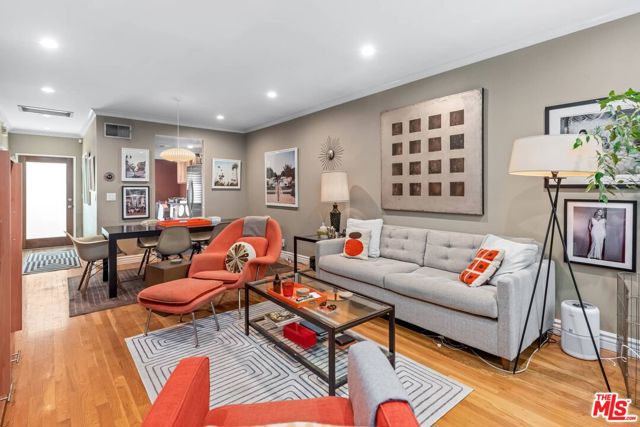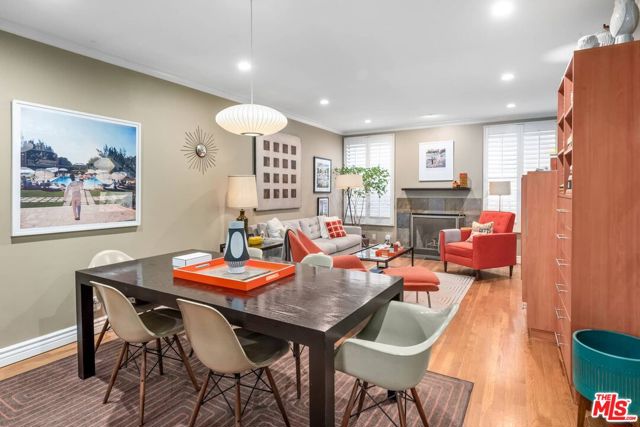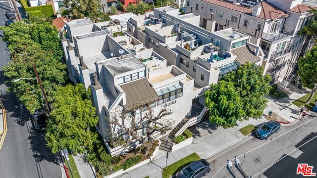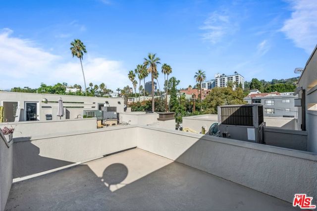 Occupying a prime WeHo location, this small complex of only 10 units is located four blocks from Beverly Hills and one block to Sunset and Santa Monica Boulevards, putting you within close distance to services, shops, and dining including local favorites Dialog Cafe, Bottega Louie, Cecconi’s and the world famous Abbey. The three-story, townhouse-style floorpan creates separate sleeping and entertaining zones, with two bedrooms upstairs (each with its own en-suite bath) and a separate powder room on the lower level. A private roof deck was recently refinished and provides a prime spot for outdoor dining with northerly views of the West Hollywood Hills and North of Sunset neighborhood.The kitchen features a porcelain tile flooring, new Shaker-style cabinets, tiled backsplash and stainless steel appliances installed within the last five years.There is recessed lighting throughout, a Nest thermostat and an ADT Alarm system with motion detectors. There are plantation shutters on all windows, crown moldings, a private laundry and storage room with washer-dryer, and a gas fireplace with natural-looking ceramic logs in the living room. The building was just given a mini-facelift resulting in refreshed courtyard tile and newly painted front planters and walls. Additional winning features include two side-by-side parking spaces with direct access into the unit from the garage level and low HOA dues.