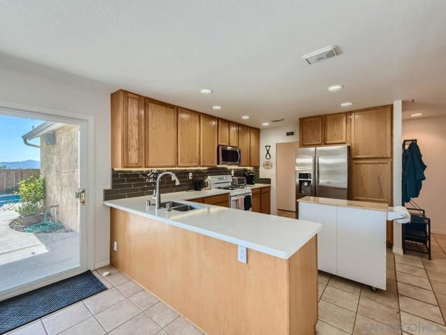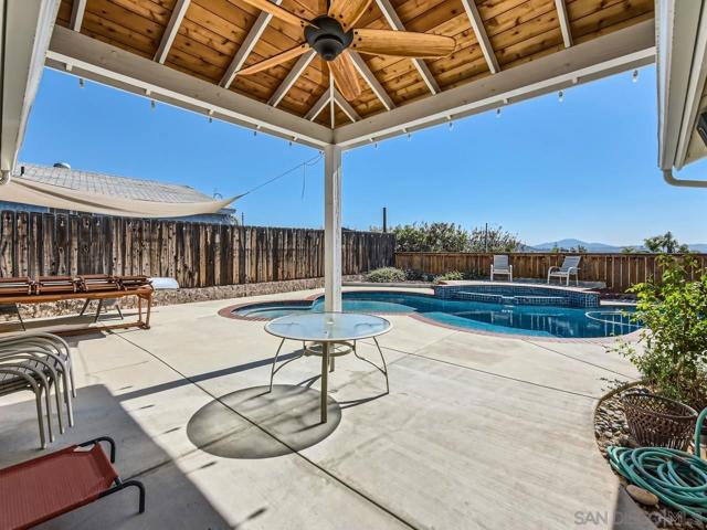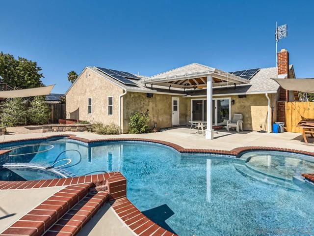 Spacious single story 4 Bedroom home features “bright and light” open floor plan.. Entertainment size Family Room with fireplace.. Spacious kitchen features Quartz counters, stainless steel refrigerator (included) and cabinets galore.. SOLAR ELECTRIC SYSTEM IS PAID- Enjoy the savings without the cost.. 2 Car garage + 29’x12′ RV PARKING.. Large covered patio overlooks private rear yard with Sparkling Salt Water Swimming Pool + Bubbling Spa.. Enjoy rear view of the valley.. Central air-conditioning + Forced-air heating..