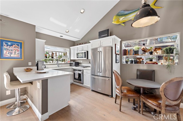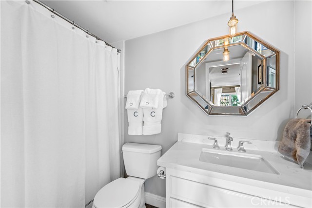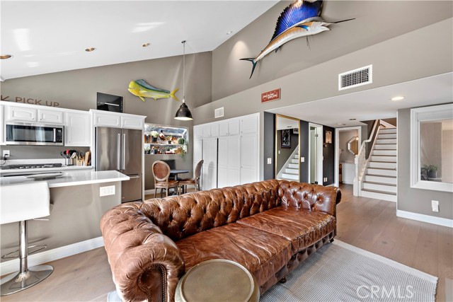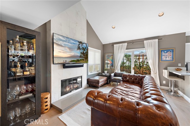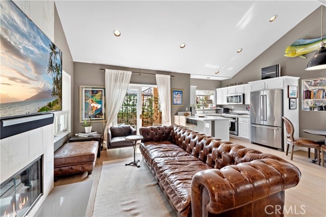 Located in the heart of the Village, this stunning two-bedroom rear home offers an open concept floorplan with light hardwood flooring and timeless upgrades throughout. Highlighted by vaulted ceilings, walls of windows, and a floor-to-ceiling quartz fireplace, the living room has direct access to covered lounge deck. The kitchen is fully equipped with top-of-the-line appliances, ample storage space, and sprawling counters, alongside the dining room with bay window. The primary bedroom offers a spacious retreat, spa-like bathroom, and a sun-soaked deck perfect for relaxing or entertaining. The second bedroom can easily be utilized as a home office or guest room. The home is also equipped with central air conditioning and provides a perfect combination of luxury and convenience in a prime location. Live the Corona del Mar Village Lifestyle with proximity to local parks, famed shopping, exquisite dining & world-class beaches.