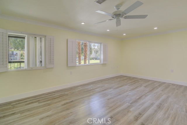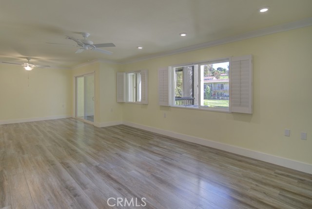 GREAT GOLF COURSE VIEW LOCATION! HIGH-END REMODEL IN EVERYWAY… Shaker cabinets, new doors, and woodwork throughout. Beautiful enclosed patio with travertine floors. Lots of built-ins in the living room with beverage cooler, extra cabinets, and storage. Tile showers with Hansgrohe fixtures and grab bars. Five ceiling fans, 30+ LED downlights, high-efficiency 16 SEER Central HVAC. New windows and plantation shutters, along with an open kitchen to enjoy and a formal dining room. WONDERFUL HOME FOR ENTERTAINING! Subterranean parking with additional storage space and large enough space for a golf cart in your assigned parking spot. Enjoy the convenient option of an elevator, along with a recreation room with a pool table and kitchen… great for parties, meetings and much more…wonderful addition : ) Add all this to the amenities offered by Laguna Woods Village and you have a winning combination – 27 hole championship golf course, 9 hole executive par 3 courses, tennis, paddle tennis, lawn bowling, 2 fitness centers, 7 clubhouses, 5 swimming pools, equestrian center, gardening, art studio, world-class wood shop, over 200 clubs and organizations. Plus, free bus transportation around the community, nearby shopping and bus trips. Country Club Living at its BEST and just approximately 6 miles from beautiful Laguna Beach! BEST HIDDEN SECRET IN ORANGE COUNTY…