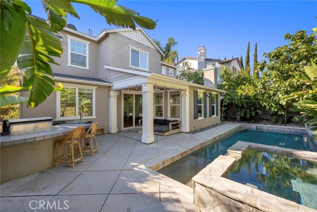 What an amazing location for this well appointed pool home. Located across the street from the Flintridge Village clubhouse. This community amenity also offers a pool, tennis court, playground and grass area. The home offers its own private oasis in the backyard. Relax and enjoy the pool, spa, BBQ and sitting area. The home boasts: 5 bedrooms (One on the main floor) plus an office, 3 full baths and approx. 3,213 sq.ft. Recent upgrades: Luxury vinyl plank flooring. Range top. Kitchen island has been extended. NEW carpet. The open floorplan, location and backyard make this the perfect place for everyday living and entertaining. The first floor offers: Bedroom, office, kitchen, dining room, family room with fireplace, full bath and laundry room. The second floor offers: 4 bedrooms, workstation area in the hallway and 2 full baths. The primary suite is sure to please with a custom built in, oversized bath with soaking tub, separate shower, dual vanities and dual closets. The private veranda off the primary suite is a terrific place for relaxing. You have views of the pool/backyard from the house and views of the community facilities, trees from the veranda. Two car garage with direct access into the home. ALSO INCLUDED: 1) Termite clearance. 2) Home warranty. 3) Refrigerator in kitchen. 4) Washer and dryer. 5) Solar that has been recently expanded. 6) Solar backup. 7) EV charger. 8) Removable pool fence. The location, amenities and floor plan make this a must see – Come take a look today!