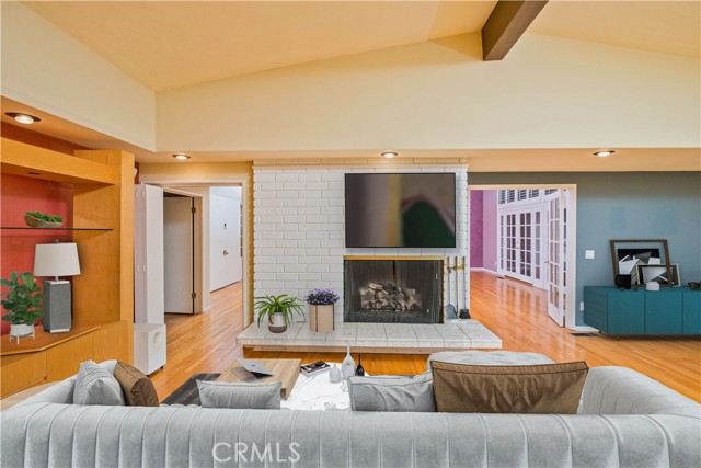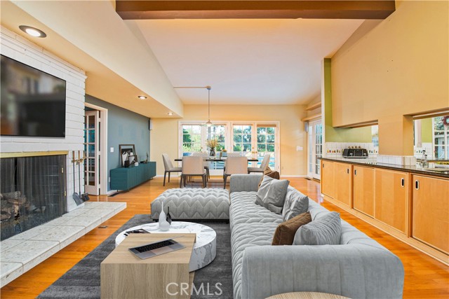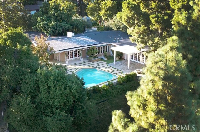 Expansive single story 5-bedroom home that backs to the Knollwood Golf Course. Mid Century vibes are noticeable the minute you drive up. Exceptional curb appeal with paver circular driveway, relaxing stone waterfall and thousands spent on professional exterior lighting to front and back yards in 2023. Enter through the double doors and you will find close to 3600 sq/ft of spacious living space. Great use of natural light with abundant windows and French doors throughout. Separate living room with vaulted beam ceiling, recessed lights and wood floors. Beaming family & dining room combo has a cozy fireplace and spectacular views of the well-manicured entertainer’s yard. Family room opens up to eat in kitchen with bay window, ample cabinets/storage and built ins. Desirable floor plan with 1 bedroom and bath on one side of the home and remainder bedrooms and baths on the other side. Generous primary retreat with tons of closet space, double sided fireplace and French doors leading out to relaxing pool and StruXure louvered smart patio. Updated primary bath with jetted tub, steam shower, dual sinks and bidet. Large 21,677 low maintenance entertainers’ lot with pool, several patios, firepit, tiered hillside walkway that leads to a serene and hidden overlook, that allows for views off the golf course. Few other upgrades include owned solar, upgraded electrical panel, earthquake reinforcement completed in 2018 and brand-new pool filter. First time in 30 years that this lovingly maintained home has been on the market and the pride of ownership is visible!