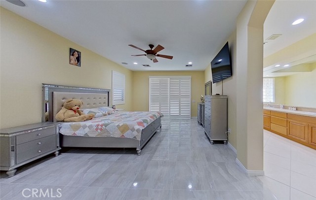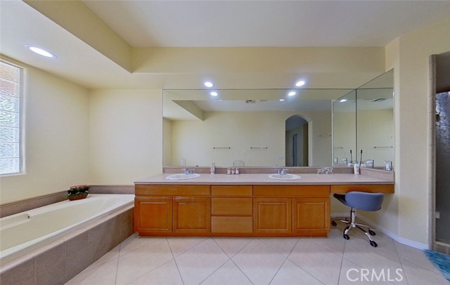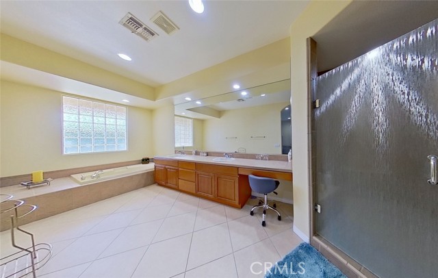 THIS FABULOUS SINGLE STORY HOME IS VERY LIGHT AND BRIGHT LIVING SPACE IN EXCELLENT NEIGHBORHOOD : NEW CERAMIC TILES THROUGH THE WHOLE HOUSE, PLANTATION SHUTTERS , LUXURY 3 AND 1/2 BATHS. 2 MASTER BEDROOMS, ONE OFFICE ROOM SO CONVENIENCE FOR YOUR WORKING AT HOME,THE KITCHEN HAS GRANITE COUNTERS CONNECTED TO THE FAMILY ROOM FOR YOU TO VIEW THE WONDERFUL POOL AND SPA IN THE BACK YARD WITH ALL BRICK WALLS . VERY QUIET CUL-DE-SAC CLOSE TO THE PARKS, SCHOOL AND SHOPPING CENTERS. THIS IS A MUST SEE ! HURRY, IT WON’T LAST !