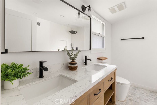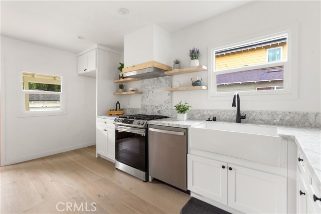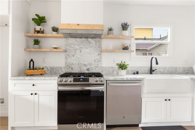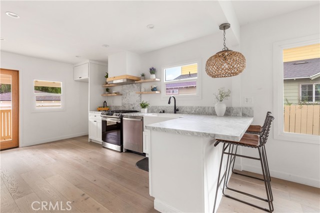 Welcome to this beautifully remodeled four bedroom, three bath bungalow residence in Altadena offering charming modern design flow that creates maximum functionality as well as aesthetic appeal. As you enter the property you will be delighted and welcomed by a bright and open concept with an abundance of natural light from the oversized dual pane windows and Batchelder tiled decorative fireplace. Your gaze will be drawn to the upgraded kitchen that has been upgraded and equipped with new appliances such as range and dishwasher, white Shaker cabinetry, marble countertops, farmhouse apron sink, and wooden shelves. The updated bathrooms showcase exquisite tile work and top of the line materials. The spacious master suite has a large closet space, and beautiful en-suite bathroom that includes a double vanity with a quartz countertops and soaking bathtub. Two of the bedrooms with shared full bath are located on the second level. This home offers new interior doors, energy efficient windows, engineered wood floors throughout the home, recessed lighting, central heat and air, washer & dryer hook-ups, pantry/storage located at hallway, extra-long driveway leading to finished garage. The large backyard has many potential possibilities to suit your lifestyle, entertainment needs and possible ADU expansion or swimming pool. This lovely home is located minutes from the historic Rose Bowl, Brookside Golf Course, Old Town Pasadena, JPL, Cal Tech, Pasadena Gold Line and Old Town Pasadena.