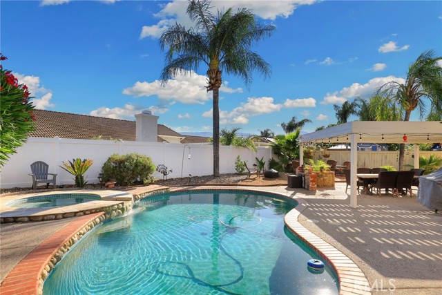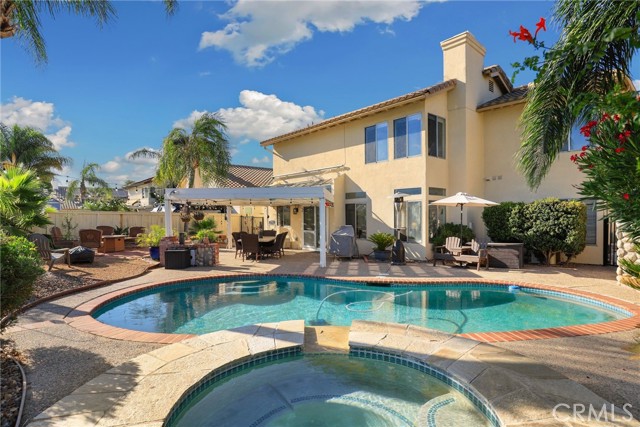 PRICE IMPROVED!!! Quaint curb appeal combined with quiet, elegant charm awaits in this gorgeous home in one of Murrieta’s highly sought after neighborhoods. As you enter you will gaze upon soaring two-story ceilings adorned with large windows that allow natural light to illuminate the living spaces. The formal living and dining rooms flow seamlessly together for ease of entertaining. The kitchen has been reimagined to feature windows along the roof line and wall to create a bright, inviting space for all to gather with an abundance of crisp, white cabinetry, quartz countertops and stainless steel appliances. The family room is the perfect place to gather with a dry bar with wine fridge, cozy fireplace and direct access to the backyard. One bedroom and full bathroom on the main level will make guests feel welcome. Upstairs offers a large loft, four bedrooms and two bathrooms, including the primary bed/bath. Dine al fresco under the large, covered patio or cool off in the sparkling pool and spa. There is even additional space for play in this huge backyard! The attached 3 car garage makes parking a breeze and adds extra storage space too. No HOA and low taxes! Located in a great school district, close to shopping, dining, entertainment and freeways. What more can you ask for?! Don’t let this beauty get away!