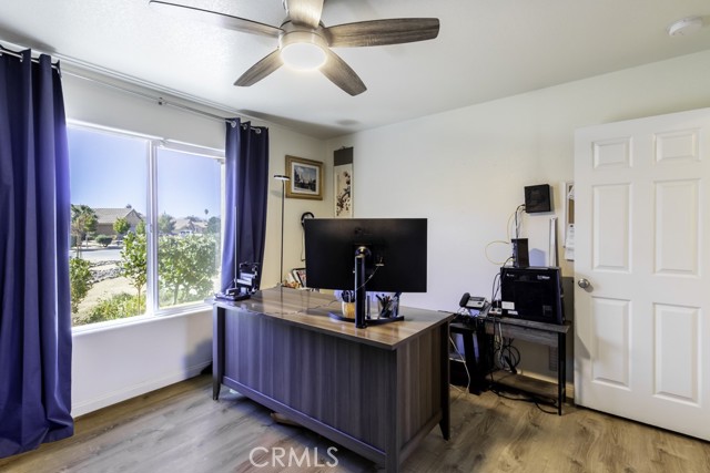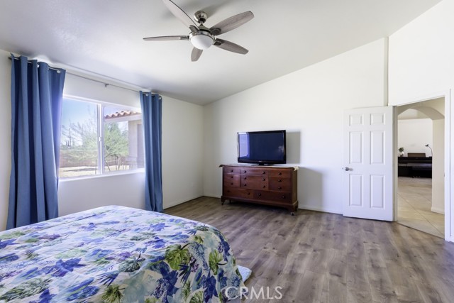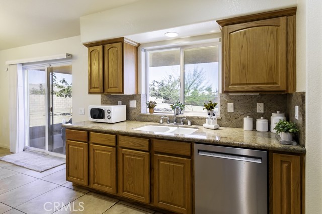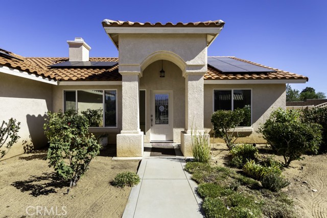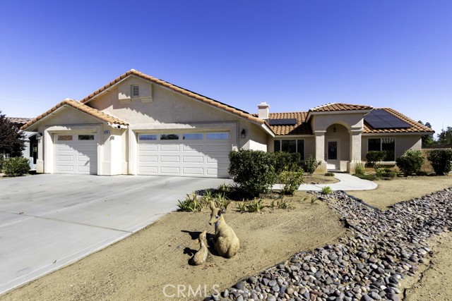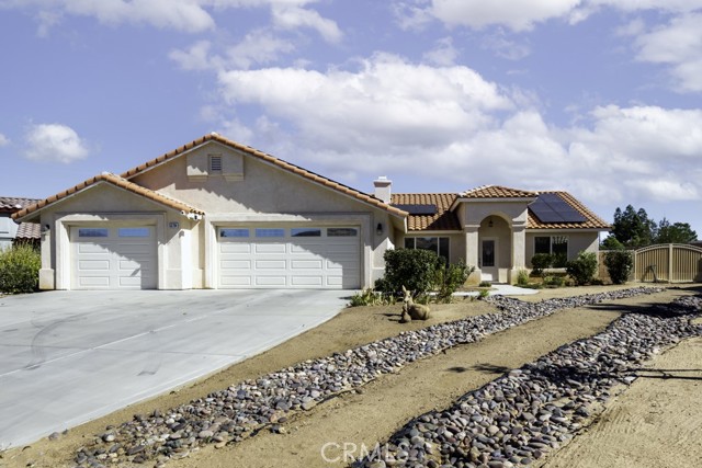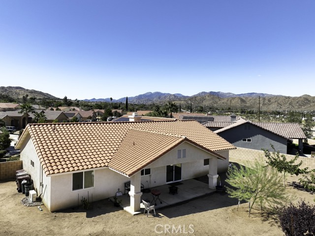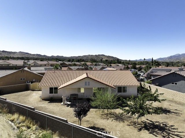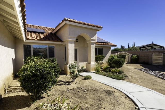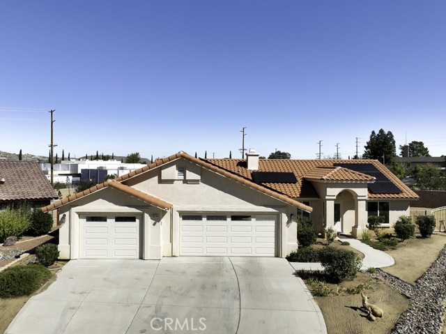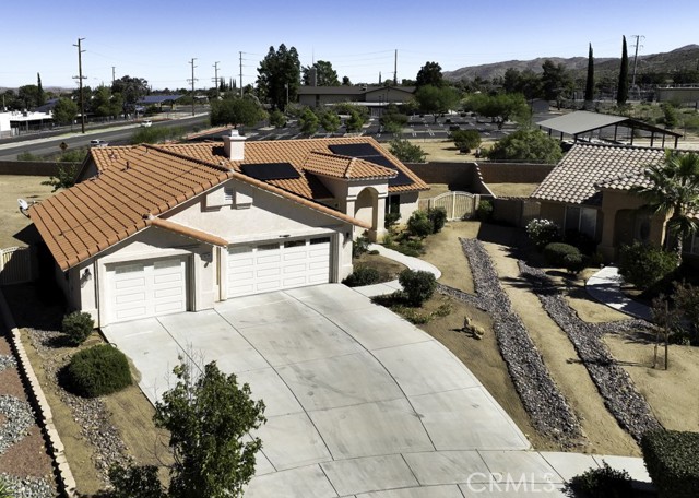 Welcome to your charming new home! With tree-lined streets and a cozy ambiance, this residence offers the perfect blend of comfort and elegance. Upon entry, be greeted by soaring ceilings and a beautiful wood-burning fireplace with gas log lighter– perfect for cozy nights. The well-designed split-bedroom floor plan caters to those who prefer guest rooms opposite the Primary Bedroom. Meal preparation is a delight in the upgraded kitchen, equipped with stainless steel appliances, a large breakfast bar, recessed lighting, walk-in pantry, gleaming granite countertops. Enjoy delightful patio views while you cook, enhancing the overall culinary experience.rnThe master suite is a luxurious retreat, offering a roomy walk-in closet, a jetted spa tub for ultimate relaxation, and a private toilet room for added privacy. rnNestled at the end of a quiet cul-de-sac, this property ensures enhanced privacy and a serene atmosphere for your enjoyment.rnDesigned for both comfort and convenience, this home features an indoor laundry room with a sink and cabinets, offering practicality for daily living. Modern amenities include newer wood-look vinyl plank flooring, a new kitchen faucet, ceiling fans throughout, tinted windows, and an assumable solar system, enhancing energy efficiency.rnStep outside to discover a spacious covered concrete rear patio, perfect for outdoor gatherings and relaxation. The front and rear landscaping, complemented by an auto irrigation system and masonry wall, create a private outdoor oasis. With an oversized 3-car garage, you’ll have ample space for your vehicles and storage needs.rnThe backyard beckons your creativity, offering plenty of room for a pool and your landscaping dreams to flourish. The La Paz Homes neighborhood, developed by local legend Don M. Lander, is known for its quality and thoughtful design, featuring natural gas, a well-engineered drainage system, parkway landscaping, curbs, gutters, and sidewalks for safe and convenient strolls.rnConveniently located near various attractions, this home provides easy access to the nearby Joshua Tree National Park, with its West entrance, Black Rock, just minutes away. Enjoy a plethora of recreational activities such as hiking, mountain biking, and horseback riding in this picturesque environment.rnSeize the opportunity to make this residence your forever home. Discover the meticulously curated details that make this house perfect for you. Welcome home!