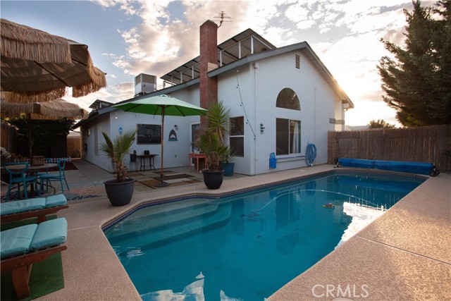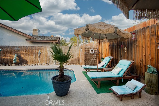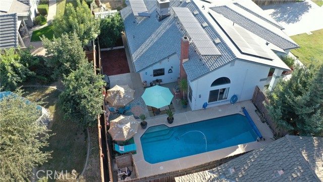 This 3-bed, 2-bath home boasts 1,649 square feet with an open floor plan with vaulted ceilings, and a cozy fireplace in the living room. The wrap around kitchen with breakfast nook has plenty of counter and cabinet space. Equipped with indoor laundry. Down the hall you will find generously sized guest bedrooms with large closets for all your storage needs. The master bedroom is spacious, providing an expansive retreat for relaxation and personal space. The ensuite has his and her sinks with a built in vanity and walk in tile shower. Enter your own private backyard oasis! Beautiful crystal blue pool to enjoy. With owned solar you’ll have the ideal blend of comfort and energy efficiency. Dive into the good life today!