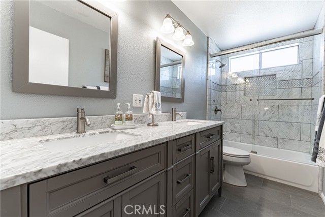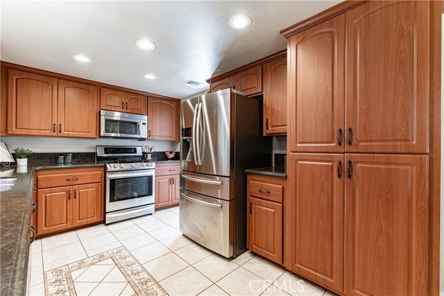 ** TURNKEY ** TURNKEY ** TURNKEY ** Beautifully updated spacious North La Verne four-bedroom home on a large corner lot. Step-down living room with cozy wood-burning fireplace. Just in time for those upcoming cold winter nights! Kitchen updated with quartz countertops, wood cabinetry and self-closing drawers. Refrigerator, washer and dryer are included with no warranties. Kitchen has breakfast nook area, with the formal dining area adjacent to the kitchen and living room. Very desirable first floor primary bedroom and bath. Large, remodeled bath has huge soaking tub, separate shower stall, vanity area, quartz countertops, built-in linen storage plus dual sinks. Second bedroom on main floor can also function as a home office or den. Family room is adjacent to the kitchen with brand new sliding glass doors to the private rear yard. The second floor has bedrooms 3 and 4 plus a full remodeled bathroom. The 4th bedroom is a very large 12 x 19 room with two closets. There are unlimited possibilities for this space – a bedroom, a bonus room, a craft room, a billiard room, or ? Be creative and name it! Remodeled hall bath has marble countertops with dual sinks. The second floor has access to an abundance of storage space above the garage. New F/A and C/A units, copper plumbing, and dual pane windows. Large, enclosed patio/sunroom, no permits. For you car enthusiasts, there is a spacious 3-car garage and RV parking. There is a very large (unpermitted) sunroom that also has unlimited possibilities, not included in square footage. GOT FRUIT? WE DO! Orange tree, 2 lemon trees and a pomegranate tree! Backyard has fire pit for those cold nights and S’mores! Storage shed stays. All termite report work completed.