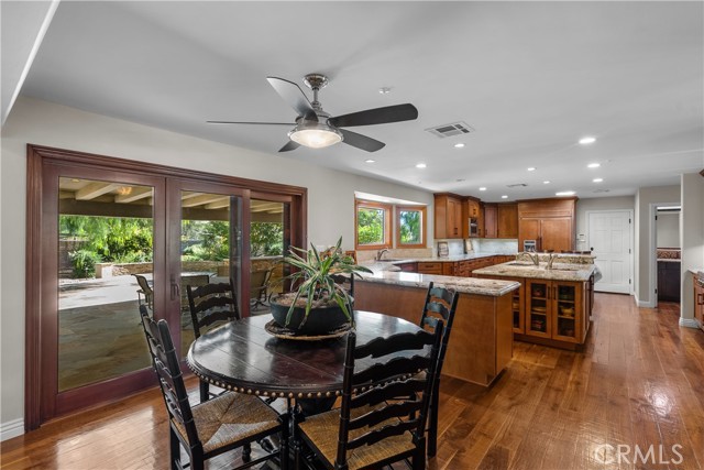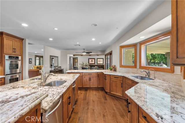 The word exquisite means “Marked by flawless craftsmanship or by beautiful, ingenious, or elaborate execution”, & so this home starts out by being a few giant steps above the rest. Double glass beveled front door gives you a titillating hint as to what must be about to be revealed as you enter, so, come on in. Ahead, the family room makes an immediate statement with its commanding fireplace, wood beamed ceiling, rec/ lights & custom rug. The liv/room couldn’t be more perfect. Hardwood floors gleam. Large bay windows illuminate the interior. Formal dining, custom lighting is simple, & elegant, though it is only the precursor to the “pièce de resistance”, that is the kitchen. Centre Island with 2 sinks, outlets & room to sit. Abundance of stunning cabinetry with built in microwave, backsplash with the added touch of custom outlet covers. SS steel appliances. Double oven, & stove top. You can hear the laughter now as new memories are whipped up during family gatherings as sumptuous meals are made. Breakfast eating area, with slider to the patio, gives you a glimpse of the rear yard, that you can’t wait to go & see. At every turn, your eye falls on yet another tasteful upgrade. Powder room to oblige your visitors who don’t seem to want to leave! Oversized laundry room with sink, copious cabinets, & space to fold. The bedrooms are first dominated by the master suite. 3 closets, 1 walk in, double glass entry door into the master bathroom. Soaking spa tub, separate shower, double sinks. Here, as befits the master, another fireplace. Other b/rooms will not disappoint family or guests. 1 b/room, being used as an office. Hall bath/tub combo marks all the boxes & allows for easy access to the exterior. Step outside. I won’t wax lyrical. You can see for yourself how absolutely stunning this is. The patio shelters you from the elements, yet allowing the privacy so needed for relaxation. Built in BBQ with fridge/storage plus views to make your relaxation time, even better. The rear yard has been lovingly organized to display flowers, shrubs, trees & rambling walkways to different parts of the yard. Truly magnificent anyway you look. 6 kennels, huge producing fig tree, round pen plus ample room to add your imagination to your new home. 2 car garage w/ shelving. Out front, a circular drive way bursting with flora. Huge arena, w/shelters, shed, food storage & tack, RV cover, Pump house. Generac whole house generator. You are SOLD, so come buy me & YOU can call me HOME.