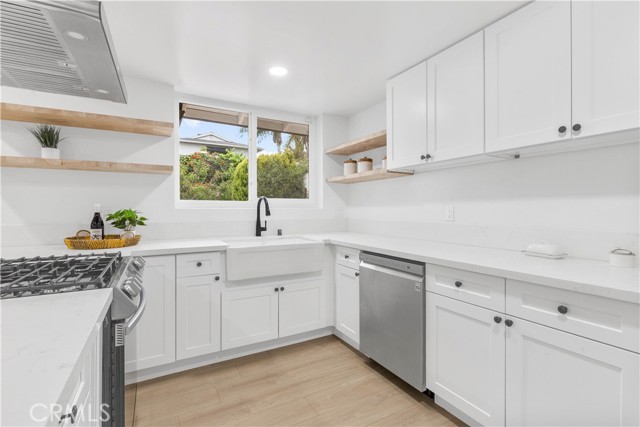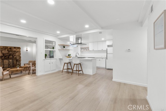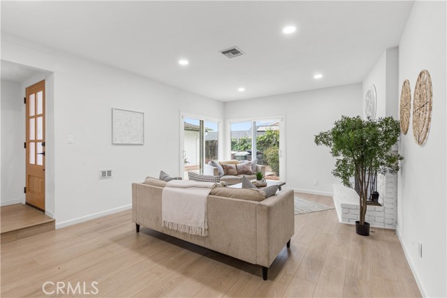 Situated in the highly desirable south-after Brea and La Habra adjacent, this charming three bedroom, 2 bath bungalow style home is a captivating blend of charm and modern comfort. As you enter through the private gate that will lead you to the wooden French entry door you are welcomed to an inviting living space that exudes a bright living-dining open concept with multiple glass slider doors. Your eyes will gaze to the remodeled kitchen which offers white shaker cabinets, quartz countertops, wooden shelves also equipped with range, dishwasher, and soft-close cabinets. The family room showcases a decorative fireplace and vaulted ceilings. The bedrooms are ALL well-lit and spacious. The two bathrooms have been updated with chic cabinetry and fixtures. Additional features include: recessed lighting, HVAC, indoor laundry, an additional backroom that could be used for a sitting area, nursery, playroom, etc. This home is minutes away from Brea Mall and Fullerton where you can enjoy the thriving local scene with trendy boutiques, eateries, and parks. Welcome home…