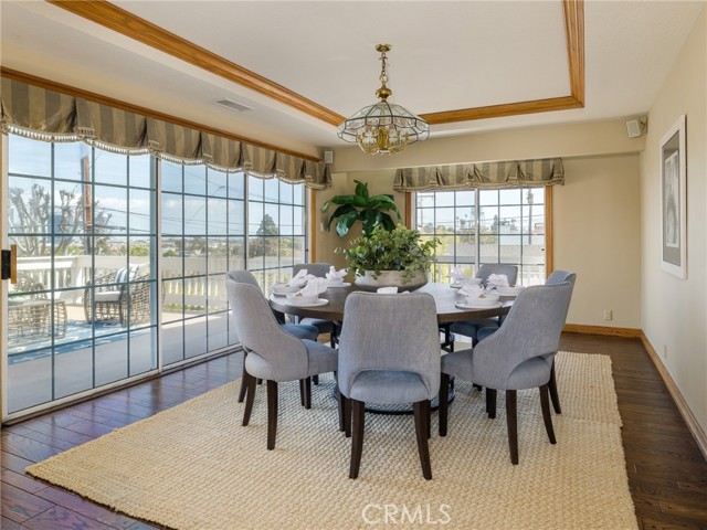 Welcome to 624 Sierra – an incredible 5 bedroom and 4 bath home in prime El Segundo location sitting on a 7,200 square foot lot. Beautifully landscaped front yard with mature trees, flowers and artificial turf leading to beautiful brickwork driveway and porch. The main floor has a bedroom that can be used as an office with gorgeous woodwork. Formal living room with vaulted ceilings, fireplace and sliding doors out to private brick courtyard with spa. Formal dining room with sliding doors out to massive deck showcasing city views with a retractable awning to incorporate indoor and outdoor living space. State of the art kitchen with Viking stainless steel appliances, granite countertops, custom cabinetry, pot filler, wine refrigerator, center island with dual drawer refrigerator and vaulted wood beam ceilings with skylight opening up to adjoining family room with sliding doors that open out to balcony that wraps around to deck and brick fireplace. Primary bedroom with walk in closet, sliding doors out to courtyard with spa, en suite bathroom with double sinks, custom tile and soaking tub. Main floor also has a formal office with gorgeous woodwork, bathroom with granite, tile and custom cabinetry. Upstairs there is a spacious den with wet bar, plantation shutters, window seat and vaulted wood beam ceiling, two additional bedrooms and a bathroom with marble vanity, marble subway tile and marble basketweave mosaic tile floor. Downstairs features a in-law suite with private entrance, kitchenette, and bathroom. 3 Ac units. Two car garage with oversized workshop in back. The backyard features mature fruit trees, artificial turf and brick patio. This home also features owned solar panels. The home is situated within a few blocks of Richmond Street Elementary School, El Segundo Middle School, El Segundo High School, Library Park, and Downtown El Segundo’s shops and restaurants!