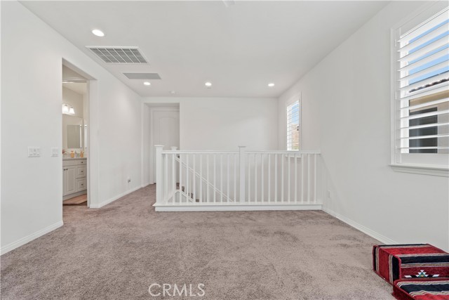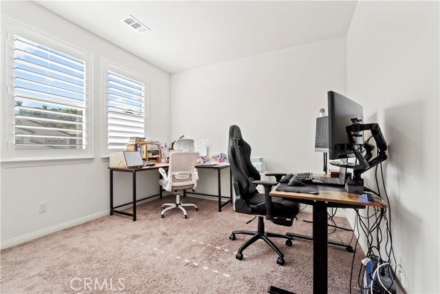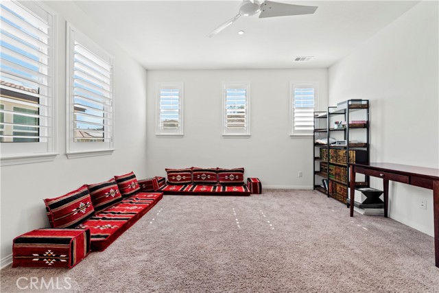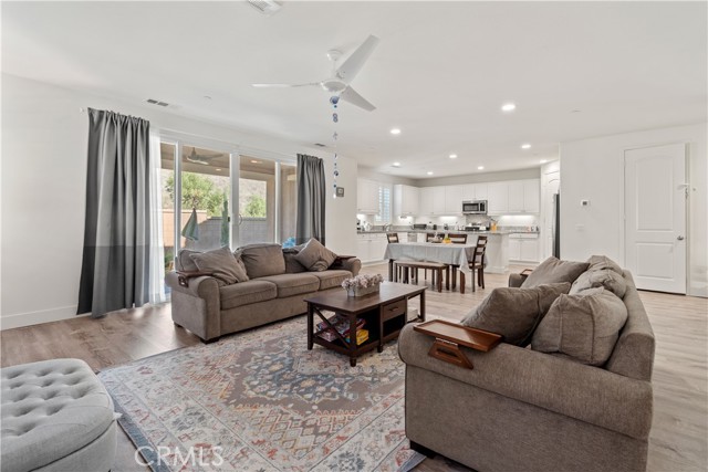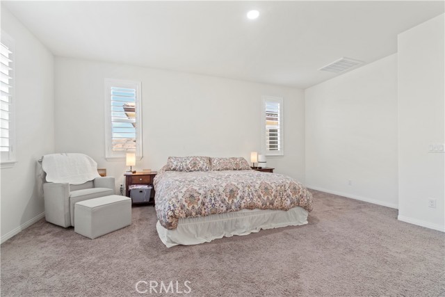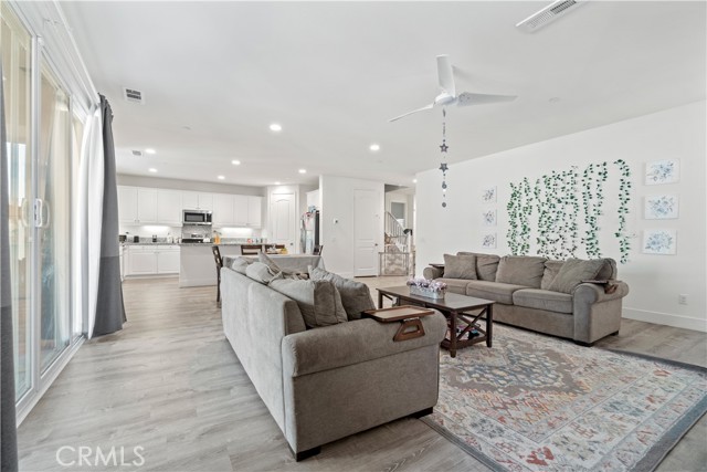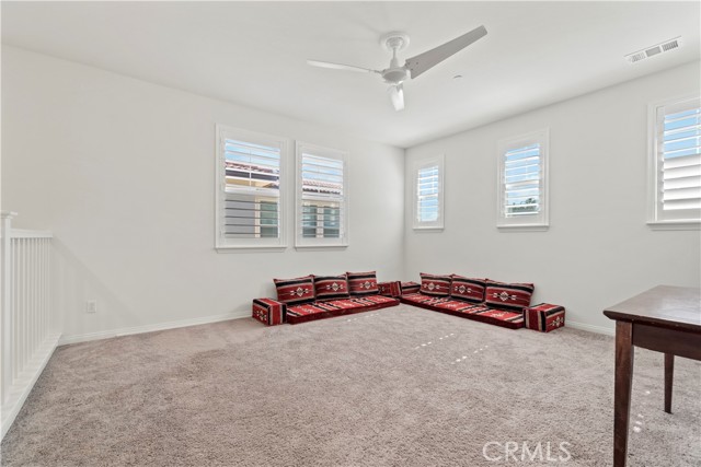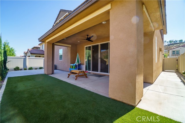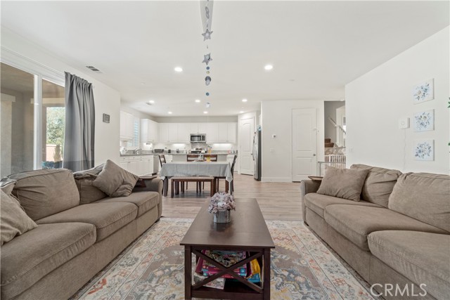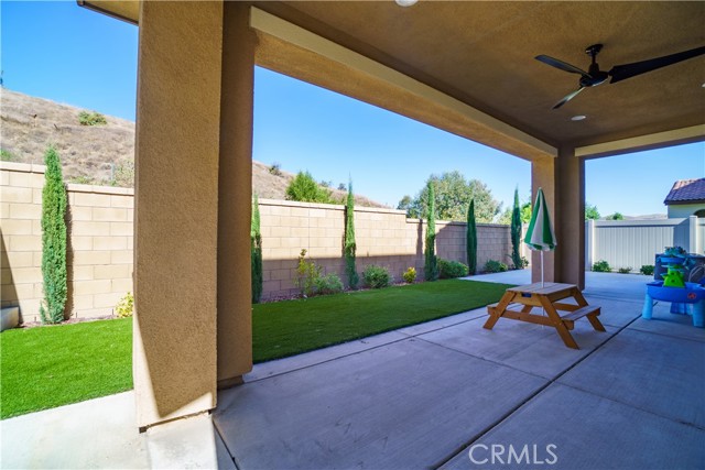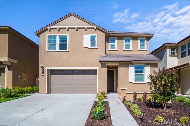 Beautiful newer home with many upgrades in a quiet convenient neighborhood! The home has 5 bedrooms 3 baths ( one bedroom with full bath downstairs; 4 bedrooms with loft upstairs) and two car attached garage! It is a open floor plan with a big kitchen( which has a good size pantry and many cabinets ) facing spacious family room for daily convenient activities /enjoyments and family entertainments!! As you enter the home through front porch you would feel luxury vinyl floors downstairs and soft carpet upstairs. There is whole house water softener system with a alkaline water filter for drinking and soft feeling shower/ washing hands… The low maintenance back yard has a big cover patio with artificial grass and convenient garden areas for family relaxation and entertainments! On top of all these you would appreciate very very small electricity bills with solar energy ( even 24 hours AC on) and jetty tub in master bath and high quality split windows shutters throughout the home which control how much light you enjoy…..rnThe home is close to park / stores and easy access to freeway (15/91)rnThe community amenities includes: a private park with a toddler play lot, covered tables/seating area, well-maintained lawn, and a basketball half-court surrounded with rolling hills. Gated RV parking is also available, currently at no additional cost. Another benefit of this home is lower tax rate than other newer homes ( total around 1.36)Exact number/ calculation to be verified by selling agent! Thank you! rnrnrnSuch a wonderful home!! Please come to see before it is gone!!