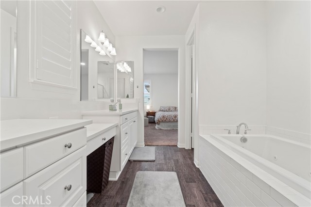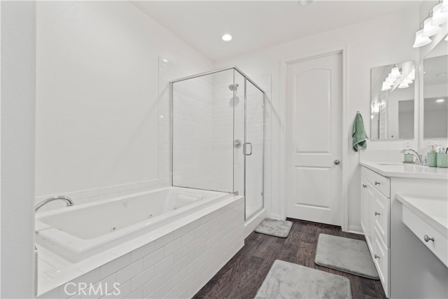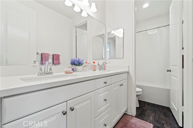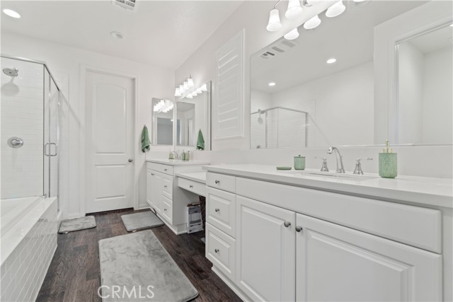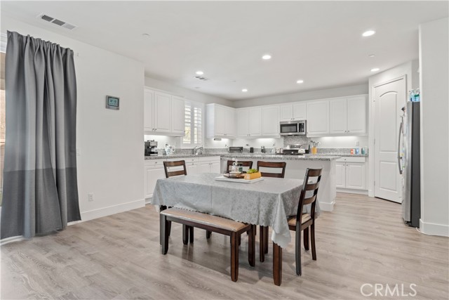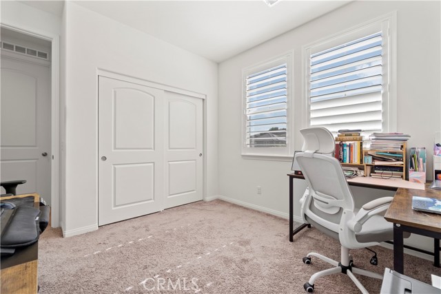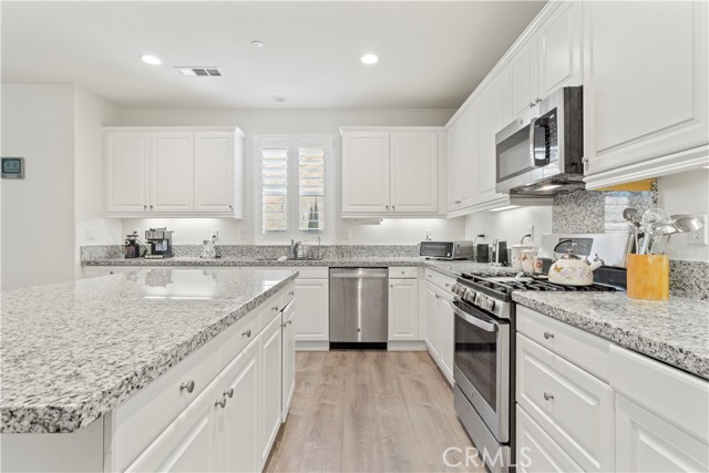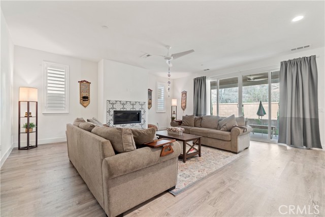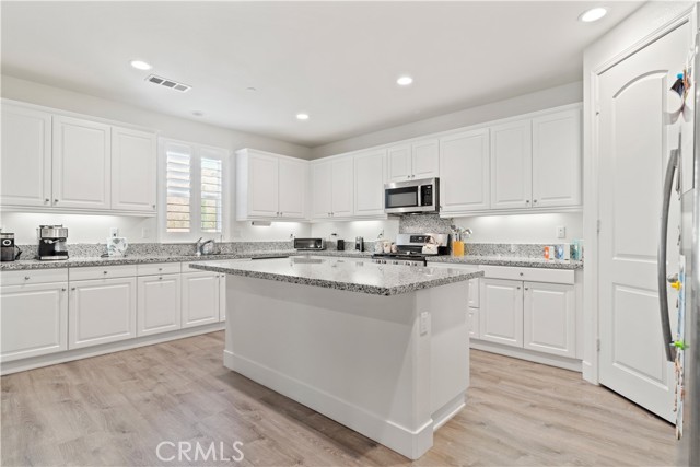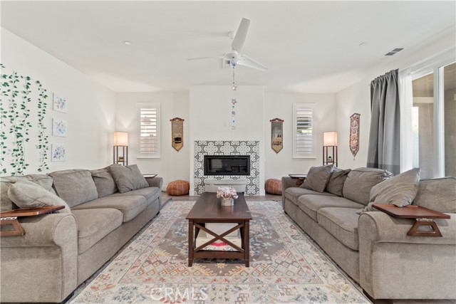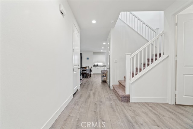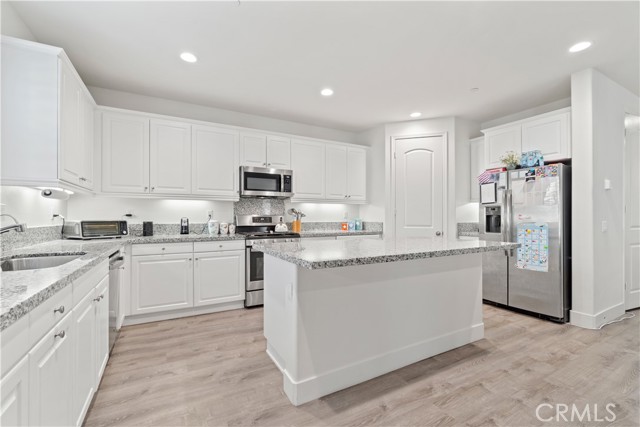 Beautiful newer home with many upgrades in a quiet convenient neighborhood! The home has 5 bedrooms 3 baths ( one bedroom with full bath downstairs; 4 bedrooms with loft upstairs) and two car attached garage! It is a open floor plan with a big kitchen( which has a good size pantry and many cabinets ) facing spacious family room for daily convenient activities /enjoyments and family entertainments!! As you enter the home through front porch you would feel luxury vinyl floors downstairs and soft carpet upstairs. There is whole house water softener system with a alkaline water filter for drinking and soft feeling shower/ washing hands… The low maintenance back yard has a big cover patio with artificial grass and convenient garden areas for family relaxation and entertainments! On top of all these you would appreciate very very small electricity bills with solar energy ( even 24 hours AC on) and jetty tub in master bath and high quality split windows shutters throughout the home which control how much light you enjoy…..rnThe home is close to park / stores and easy access to freeway (15/91)rnThe community amenities includes: a private park with a toddler play lot, covered tables/seating area, well-maintained lawn, and a basketball half-court surrounded with rolling hills. Gated RV parking is also available, currently at no additional cost. Another benefit of this home is lower tax rate than other newer homes ( total around 1.36)Exact number/ calculation to be verified by selling agent! Thank you! rnrnrnSuch a wonderful home!! Please come to see before it is gone!!