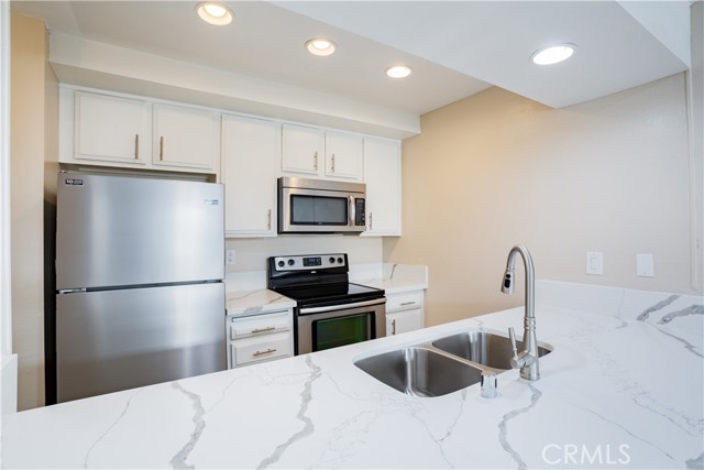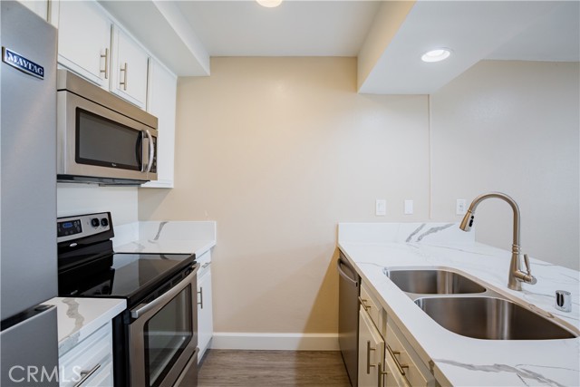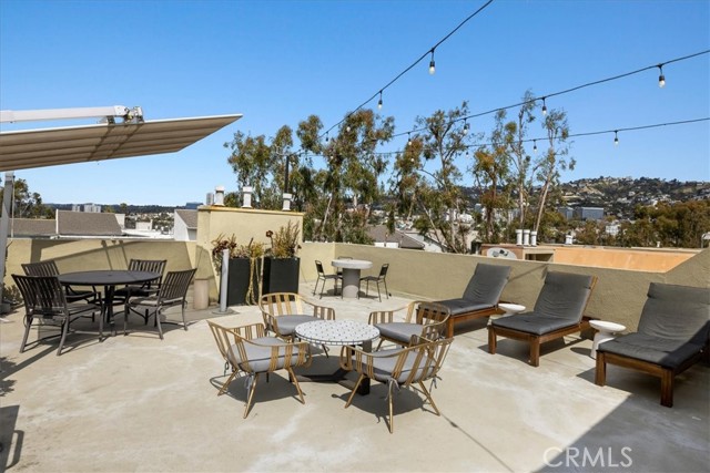 Experience modern urban living at its finest in this top-floor unit located in the heart of Prime West Hollywood, complete with two coveted parking spaces! Enjoy the new flooring and renovated kitchen adorned with quartz countertops and stainless-steel appliances. The open floor plan creates a seamless flow, making entertaining an absolute delight. Your generously sized living room offers an ambiance with a cozy gas fireplace, and a sliding door leading to an enclosed patio. The spacious bedroom is a retreat in itself, featuring a large walk-in closet with built-in storage.rnThe updated bathroom not only provides modern convenience but also ample storage space and a shower/tub combo for your relaxation.rnThis sophisticated complex boasts an array of amenities, including a billiards and recreation room, a spacious gym, two inviting spas, and an incredible rooftop deck that offers 360-degree views of the picturesque hills and the entirety of Los Angeles. Enjoy BBQ and lounge areas as you take in the breathtaking scenery. Furthermore, this building offers the convenience of guest parking, and the low HOA fee covers water, gas, trash, and earthquake insurance, providing peace of mind. Nestled in a charming neighborhood just seconds away from Melrose Avenue, you’ll relish easy access to shopping, dining, nightlife, and so much more. Your modern West Hollywood oasis awaits!