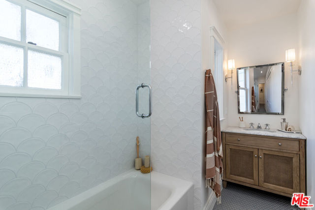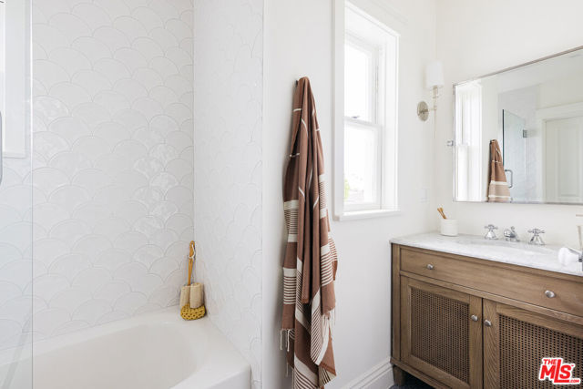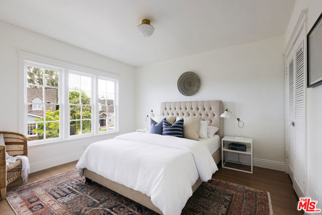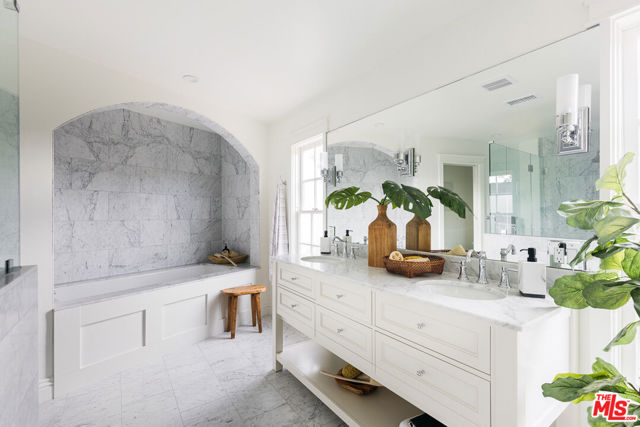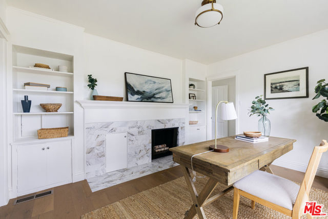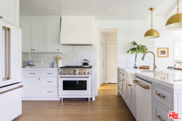 Rare offering! 51 La Linda Dr is one of just 35 homes in the coveted La Linda Drive gated community in the Los Cerritos neighborhood within Bixby Knolls. Situated on an expansive 11,000+ square foot lot with a resort style pool, this two-story home boasts 5 bedrooms and 4 bathrooms in just over 3500 square feet of living space. Be the first to live in this meticulous renovation, which includes the October 2023 addition of a full downstairs bathroom. Other recent upgrades include all new kitchen and baths, wide plank oak floors, custom cabinetry, solid wood doors with Emtek hardware, a new roof, interior and exterior paint, new plumbing, and mostly new electrical. The formal living room features gorgeous coved ceilings, a wood burning fireplace and a large bay window. The formal dining room has grasscloth wallpaper, a Serena and Lily chandelier, and a bay window and French doors that lead out to the backyard. The open concept kitchen/family room showcases large glass sliding doors letting in an abundance of natural sunlight. The chef’s kitchen is appointed with white and brass GE Cafe appliances, a marble tile backsplash, custom plaster hood, single basin farm sink, and an island with bar seating. The fifth bedroom/office is en suite with its own full bathroom and wood burning fireplace. An additional stylish half bathroom with wallpaper and wainscoting completes the downstairs. Upstairs, find four bedrooms, including a gorgeous primary suite with vaulted wood beamed ceilings, a wood burning fireplace and a sitting area. The large primary en suite bath has dual vanities, a custom arched bathtub and a Carrara marble shower with rain showerhead. Three additional upstairs bedrooms share a beautifully renovated full bath. A chic laundry room completes the second level. Finally, the attached garage has new epoxy flooring and built-in cabinets, and there is parking for an additional three cars in the driveway. Too many features to mention including central heating and air conditioning, a refrigerated walk-in wine cellar, ring cameras, smart thermostats, and abundant storage. The amazing entertainer’s backyard features a brand-new resort-style pool and spa with a Baja shelf and water feature, pool shower, a built-in BBQ, and new hardscape and landscape. In a wonderful, gated location with community social events, and close to shops, restaurants and top-rated schools, with easy access to the 405 and 710 freeways. Don’t miss this one, as opportunities like this won’t come up often!