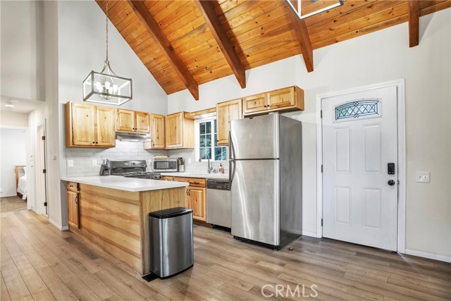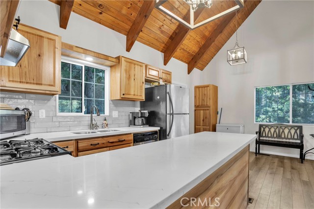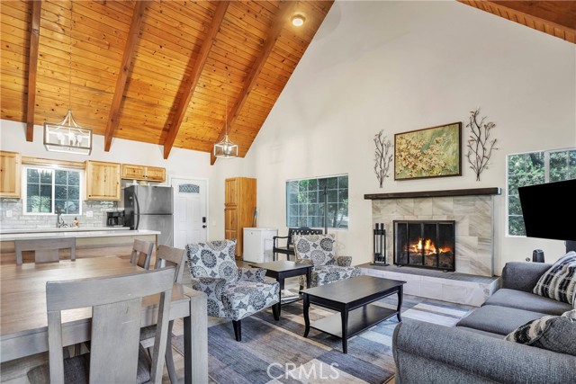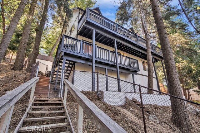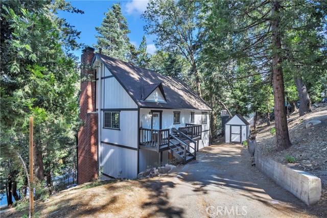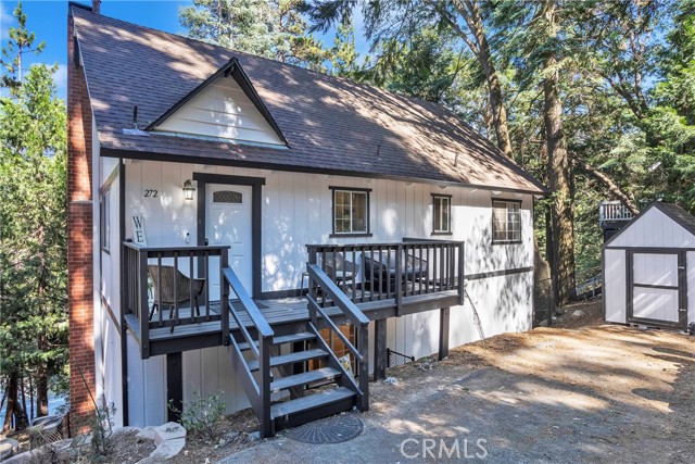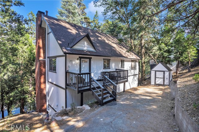 Welcome to 272 Fairway Drive. This beautiful Lake Arrowhead home is the perfect mountain get-away and has so much to boast about! Lake rights, recent updates through-out, just a few steps up to the front door, two bedrooms and two updated baths, including the master bedroom are on the main level, dual access with both streets being paved, snow plowed and maintained by the county, open floor plan with vaulted ceilings, fully remodeled kitchen with stainless steel appliances, adjoining dining/living room with gorgeous fireplace and wall of windows to enjoy the amazing tree lined setting. Expansive top deck right of the living room is great for relaxing with friends or BBQing for the crew. An additional family room/gathering place is on the lower level with beautiful brick fireplace and leads out onto the large lower deck with access out to the backyard. Three additional bedrooms and a full bath are also on this lower level as well as the laundry room with utility sink and lots of cabinetry. The back yard is fully fenced for your fur babies. There is storage galore in this home and also in the large build up area and storage shed. Not only is there parking in the front but there is also additional parking off the back. So many recent updates, but to mention a few: air conditioning, recessed lighting, hot water heater, 200 amp panel, doors and windows, flooring, interior/exterior paint, new cabinets, etc. Just minutes to the lake, shopping and restaurants. This home is being offered furnished and is ready for immediate family fun!