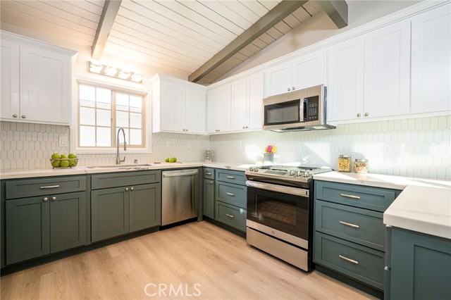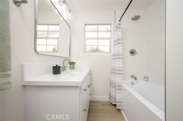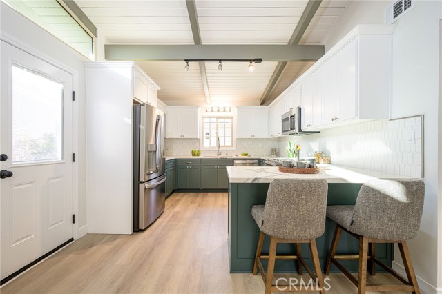You won’t want to miss this beautifully updated 3 bedroom, 2 bathroom home located in the highly desirable area of southeast Torrance. The spacious open concept kitchen, dining and living room feature vaulted wood beam ceiling, a decorative fireplace and French doors that lead to an enclosed backyard. The kitchen has been updated with new cabinets, quartz countertops, with a peninsula for additional countertop seating, tile backsplash, new stainless-steel appliances, and fixtures. Both the primary and hall bathroom have new vanities, flooring, custom tile shower/bath surround and new fixtures. Other upgrades include luxury flooring in the common areas and bedrooms, freshly painted exterior and interior, new lighting fixtures, ceiling fans in the bedrooms, newer water heater and much more. This home features central heating and air conditioning for your everyday comfort, indoor laundry, a two car garage and driveway for additional off-street parking, The back yard features a new pergola over the patio and nice lawn area perfect for family fun and entertaining.