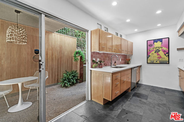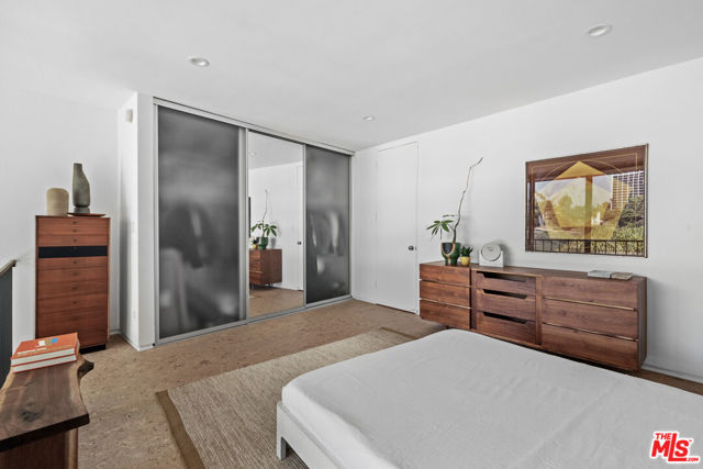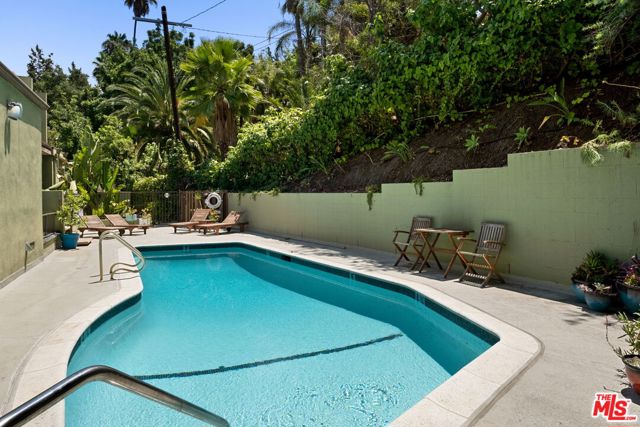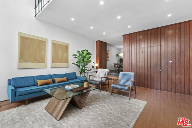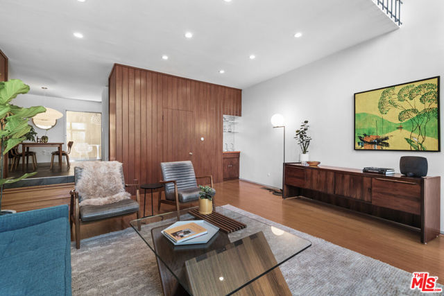 Welcome to the world-renowned architect’s, Ray Kappe, FAIA mid-century masterpiece. This architectural gem flawlessly embodies Kappe’s distinctive style, offering a perfect blend of form and function, an oasis of clean, modern design with a harmonious connection to nature and an abundance of natural light. Tall ceilings and an open floor plan create an airy and inviting atmosphere. Floor-to-ceiling glass windows seamlessly merge the indoors with the outdoors. Three spacious balconies offer a choice between serene tree-lined vistas and breathtaking city views, perfect for morning coffee, al fresco dining, or simply soaking in the beauty of the surroundings. Recent upgrades include a kitchen, bathroom and mini bar remodel, new appliances, electrical panel, new paint, and designer fixtures. The home also has been thoughtfully updated with terrazzo tiles in the primary bathroom, new Formica countertop, stainless steel sinks, restored back-to-original wood paneling, Miele washer, dryer, dishwasher in unit, new tile backsplash in the kitchen and a new roof. Additionally, upstairs cork flooring adds warmth and character. Stay comfortable and energy-efficient with a new NEST thermostat. Importantly, the building is newly seismically retrofitted. Centrally located south of the Boulevard in the coveted Cahuenga Pass. Walking distance from the vibrant shops and restaurants of Hollywood, Studio City, and Universal City. One car covered parking plus community pool. Short bicycle ride to the iconic Hollywood Bowl for unforgettable entertainment experiences. Low HOA’s. Do not miss out on your slice of paradise. All furniture available for purchase.
