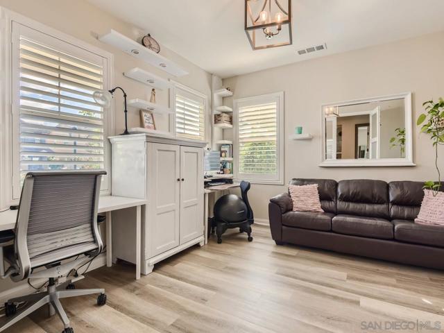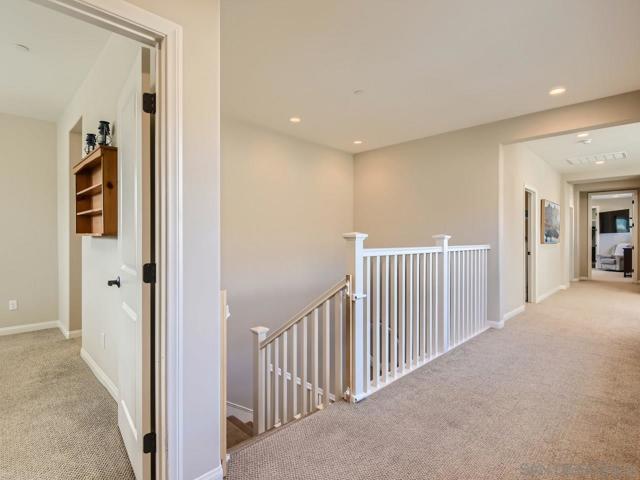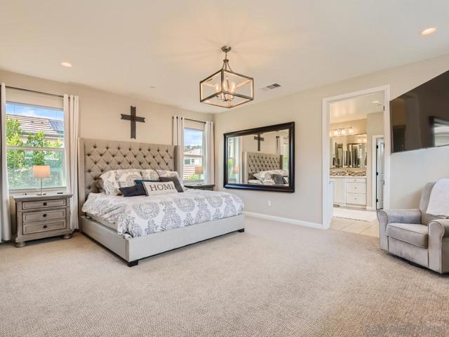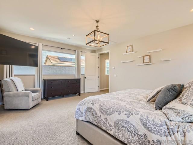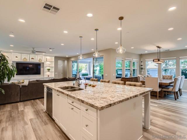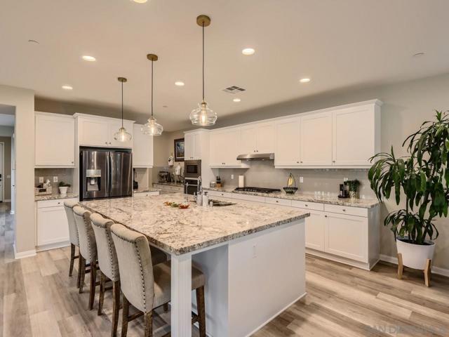 Welcome to Your Dream Multi-Generation Home in North County San Diego with mountain views! This stunning newer build has upgrades with modern design and versatile living. Located in the sought-after community of Harmony Grove. Two bedrooms and 1.5 baths on first floor, one has an en-suite bathroom. Space for everyone, 2nd bedroom is perfect for the family or as a private office. Two laundry areas, laundry room upstairs and laundry in garage on first floor. 3 of the 6 bedrooms have an en-suite bathroom. 2 bedrooms have a jack-and-jill bathroom. The primary bedroom is an enormous retreat with a double sink vanity. Loft/Bonus living space upstairs. 27 Solar panels, oversized kitchen island, beautiful luxury vinyl flooring downstairs, upgraded shutters and blinds throughout this home, 3 car garage, butlers pantry and walk-in pantry, can g24 LED lights, Palso plumbed for water softener system. Large front porch includes stylish tile artificial turf front yard with fruit trees and a beautiful flowering landscape. The backyard features an Outdoor California room that has lighting and a fan, built-in gas fireplace perfect for outdoor living and entertaining with private spa. The backyard has artificial turf and many fruit trees. This resort community offers a low HOA that includes gated Olympic-style pool and large spa, outdoor lounge seating with BBQ areas and fireplaces, parks and playgrounds, basketball court and multi-use trails for hiking biking and horse trails. Many community events and holiday activities are held at the main park. Near shopping, restaurants and freeway.