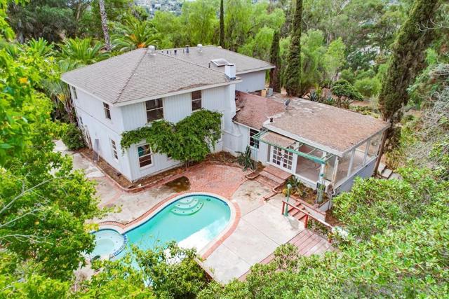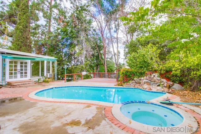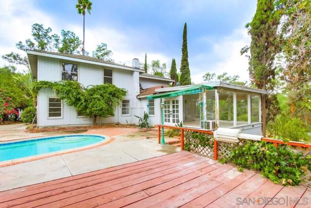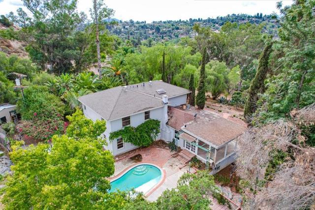 Welcome to a unique opportunity rarely found in the market – a 5 bedroom, 2 bath home on 1.67-acres nestled in the hills of South East El Cajon. This enchanting 1946 home combines old-world charm with modern living, offering a special blend of history and potential. Spacious rooms throughout the home, glassed in sunroom, recently re-finished pool, large yard and 3 out buildings for a workshop, hobby shop, etc. Very private location yet close to all San Diego has to offer. Feels like being in a tropical resort or private nature reserve. There is a ton of potential to make this into your dream home…..don’t miss out on this one!
