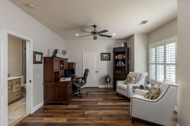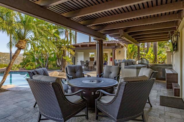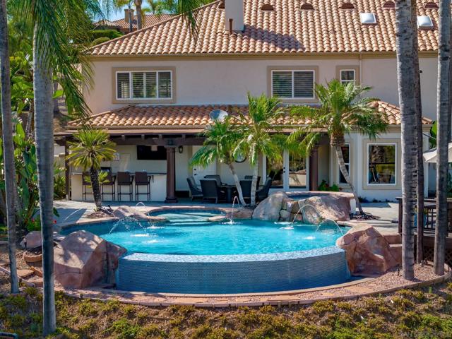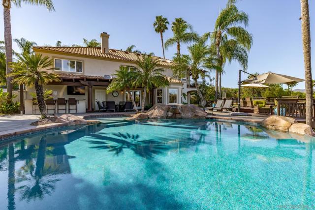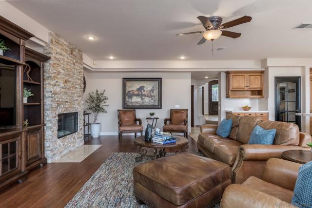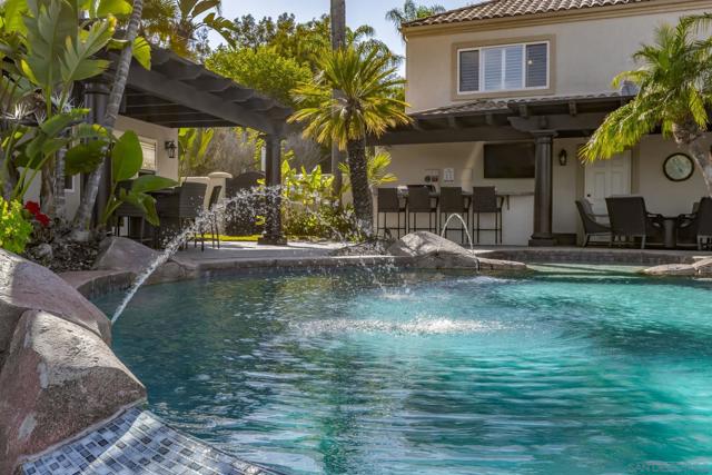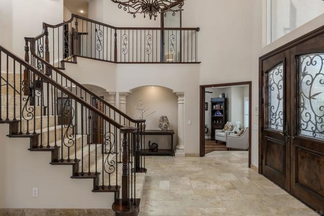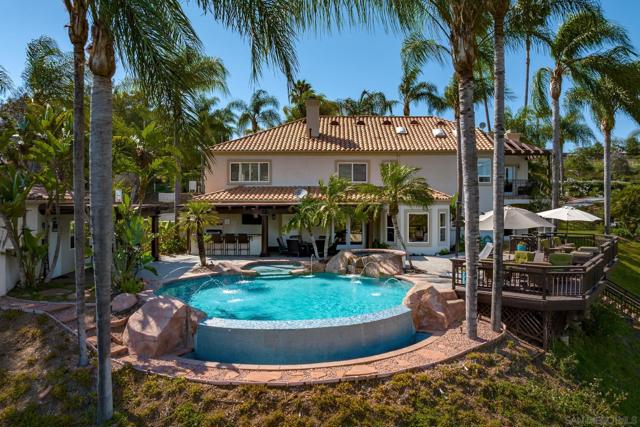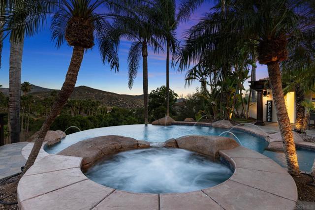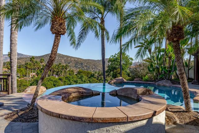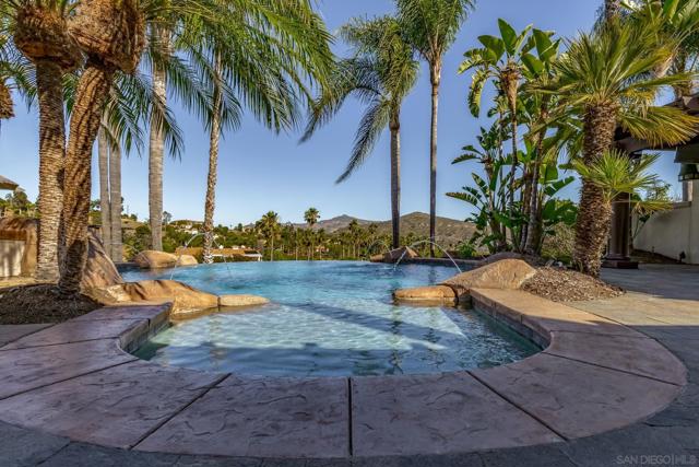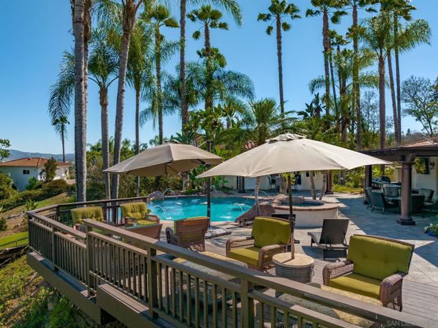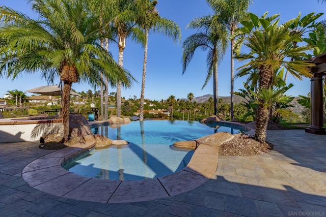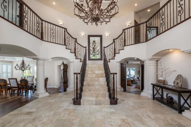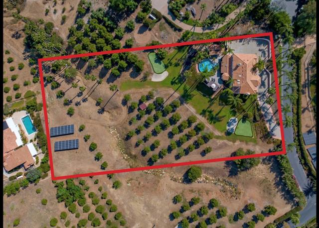 **Please See Video** ~Welcome to this luxury home in the gated community of Summit Crest Estates. Both the home & the pool are solar powered. This 2 + acre property is low maintenance & benefits from an agricultural rate for water making it energy-efficient & cost-effective to maintain. ~The gourmet kitchen features high-end appliances & new porcelain countertops. The newly installed luxury vinyl plank flooring in the formal living room & office adds a touch of refinement to the living spaces. ~Step outside, you’ll find a beautifully landscaped oasis. Theres new pavers & patio covers, plus a large bbq area perfect for hosting outdoor gatherings with family & friends. The resurfaced pool with a disappearing edge invites you to indulge in a refreshing swim while enjoying the breathtaking views. The two chipping greens & orange orchard add to the outdoor recreational opportunities, while the hot tub & cabana with a full bathroom provide a luxurious retreat. ~The master retreat features a fireplace and a private balcony overlooking the lush backyard. Wake up to endless views & start your day in a peaceful & tranquil setting. The large bonus room, currently used as a media room, offers additional space for entertainment and relaxation. ~The garage is AMAZING! 4 car + with newly epoxied floors and a staircase up to the bonus room. ~This home is conveniently located next door to the Hungry Hawk Winery, shopping, schools & freeways providing easy access to a thriving local community. *Please see supp for too many upgrades to list here* ***DONT MISS THE VIDEO*** This home is beautifully maintained. Two new hot water heaters, custom rock work on fireplaces, custom remodeled shower in guest bathroom, new kitchen countertops, newly installed solar for pool, epoxy floors in garage, plantation shutters throughout home. Large bonus room upstairs is perfect now as a media room but bring your imagination because this space could be used for any number of things! Outside ~ The cabana makes a great pool room but could easily be an exercise room, a bar and has even been used as a guest bedroom. There is a full bath connected! Newly installed pavers, large patio covers are ideal for seating areas, expansive deck has been recently stained and allows stunning views of the producing orange grove and resurfaced putting greens.