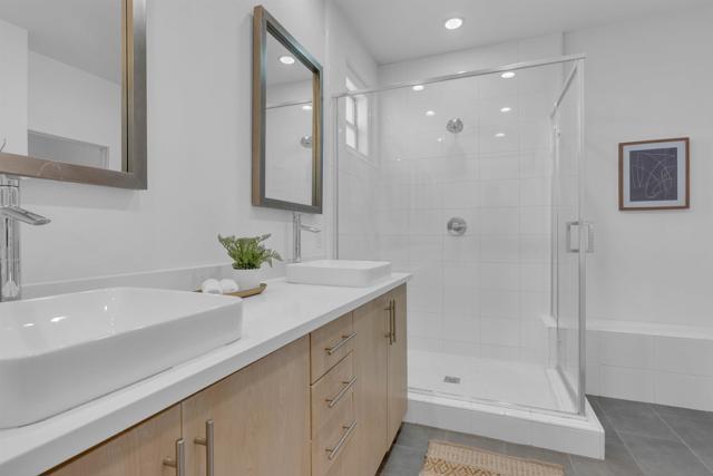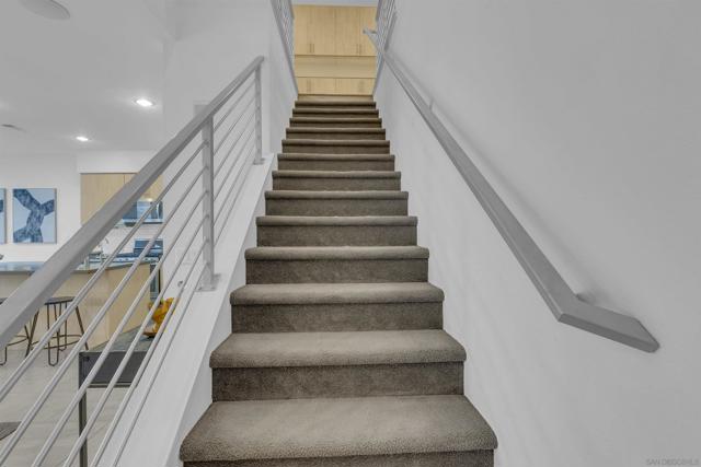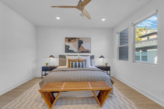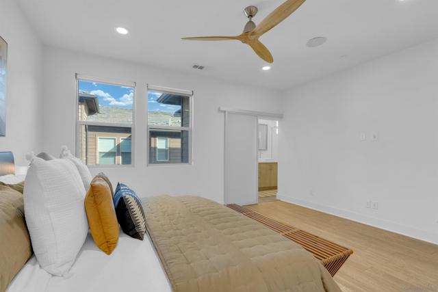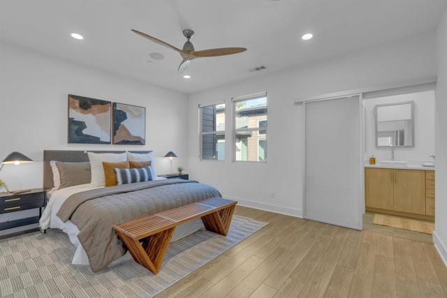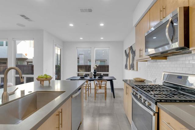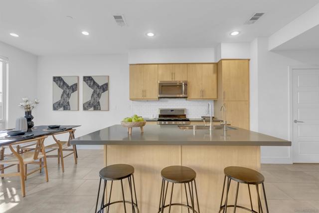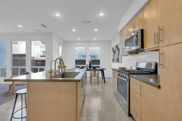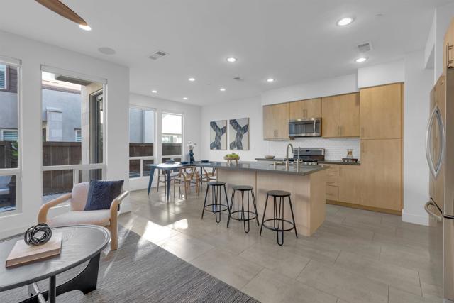 Discover the epitome of urban modern living in this 3-bedroom, 2.5-bath haven. As you step inside, the bamboo backsplash and oversized tile in the entryway extend to the living room, accentuated w/ roll-up shades, exuding a cozy warmth. The kitchen, boasts an expansive open design, featuring a large island w/ a sink equipped w/ reverse osmosis. Ascend to the second floor & indulge in the sanctuary of the primary bedroom. It comes w/ a spacious walk-in closet, an immersive surround system, & an ensuite bathroom detailed w/ double sinks & a bench in the walk-in shower. Additional convenience upstairs includes a dedicated laundry room. The supplementary bedrooms are drenched in natural light, echoing the sunny ambiance of our locale. Step outside to a backyard that showcases a planter emerging w/ greens, designed for effortless watering. Yet, the allure of this property doesn’t end with the home itself – it’s amplified by the community it’s nestled in. Perched in the serene heights of Civita is FRAME & FOCUS. Experience tranquility in this community, complete with a pool, jacuzzi, and a sheltered outdoor lounging area. Beyond these amenities, residents have gym area, all encapsulated in a sleek, contemporary setting. Location is key, & this home doesn’t disappoint. It’s steps away from the newly established Nipaquay Elementary School, an institution dedicated to curious, creative, change makers. Civita is your gateway to endless possibilities. You won’t want to miss this gem Discover the epitome of urban modern living in this 3-bedroom, 2.5-bath haven. As you step inside, the laminate wood backsplash and luxury vinyl flooring in the entryway extend to the living room, accentuated with roll-up shades, exuding a cozy warmth. The heart of the home, the kitchen, boasts an expansive open design, featuring a large island with a sink equipped with reverse osmosis. Ascend to the second floor and indulge in the sanctuary of the primary bedroom. It comes with a generous walk-in closet, an immersive surround system, and an ensuite bathroom detailed with double sinks and a bench in the walk-in shower. Additional convenience upstairs includes a dedicated laundry room. The supplementary bedrooms are drenched in natural light, echoing the sunny ambiance of our locale. Step outside to a backyard that showcases a planter burgeoning with greens, designed for effortless watering. Yet, the allure of this property doesn’t end with the home itself – it’s amplified by the community it’s nestled in. Perched in the serene heights of Civita is Frame & Focus. Experience tranquility in this community, complete with a pool, jacuzzi, and a sheltered outdoor lounging area. Beyond these amenities, residents have exclusive access to the Civita homeowners recreation center, all encapsulated in a sleek, contemporary setting. Location is key, and this home doesn’t disappoint. It’s a stone’s throw from the newly established Nipaquay Elementary School, an institution dedicated to health and wellness – perfect for budding families. The Row Civita is your gateway to endless possibilities: from home-cooked dinners, serene park jogs, and school strolls to shopping sprees or evenings out. Hop on the trolley for a downtown escapade or a ballgame. Fancy a beach day? The journey is a breeze. Strategically positioned, this home offers proximity to freeway access, grocery hubs, beaches, Mission Bay, and the Snapdragon Stadium. This gem is not to be overlooked.