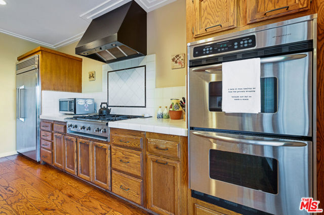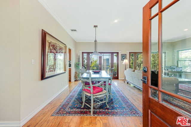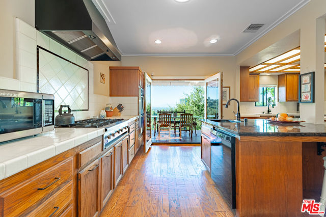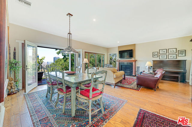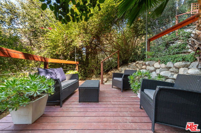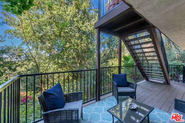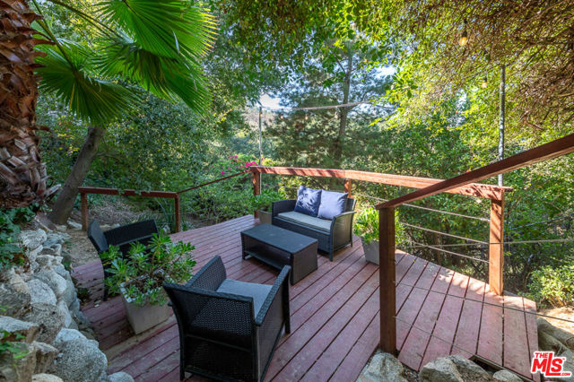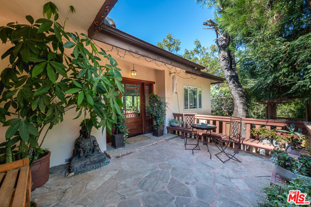 Nestled in the Hollywood Hills is this 3 bed / 3 bath hidden craftsman gem with an additional guest apartment that has its own separate entrance. Upon entering the privately gated front courtyard, you will find an open living and dining area with glass french doors that showcase the stunning treetop and mountain views. With multiple outdoor patios and balconies, this home feels like a private treehouse sanctuary surrounded by nature. The large kitchen is equipped with two sinks, two dishwashers, a center island with a breakfast bar, stainless steel appliances, a wine fridge, direct garage-entry, and double doors that open to an outdoor dining area with more stunning views. Downstairs, you will find all three bedrooms, two bathrooms, and a laundry room. The primary bedroom offers an updated bathroom with a dual sink vanity, separate tub and shower, and large walk-in closet. The separate guest apartment is equipped a bedroom, bathroom, den, and kitchenette, as well as an outdoor deck perfect for lounging. This beautiful private oasis is the perfect setting for LA living at its finest. Buyer shall cooperate with seller’s 1031 exchange at no cost to the buyer.