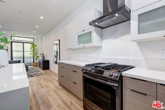 High-End New Construction in Culver City with Rooftop Decks! These four gorgeous townhomes have bright open living rooms with high ceilings, recessed lights, beautiful hardwood floors and glass sliding doors that open to private patios for outdoor dining. The gourmet kitchens have large center islands with counter seating, quartz counters & stainless-steel appliances. The front home opens to a grass front yard and has a 2nd floor balcony, while the back and middle homes have expansive living rooms that open to their side yard patios. All the homes have incredible rooftop decks providing private outdoor space for entertaining with amazing city views! All three bedrooms are on the 2nd floor, including the premier suite with its custom walk-in closet and modern bathroom with dual vanities, soaking tub and separate tiled shower. Brand new features include all new plumbing, electrical, roof, central air with linear diffusers, gated access with intercom, and an elevator to private gated parking with two side-by-side parking spaces. Incredible Westside location near Sony Studios and Tellefson Park. Surrounded by shops & restaurants with a high walk score. Close to Expo light rail, Sony, new Apple & Amazon Offices, and everything in downtown Culver City.