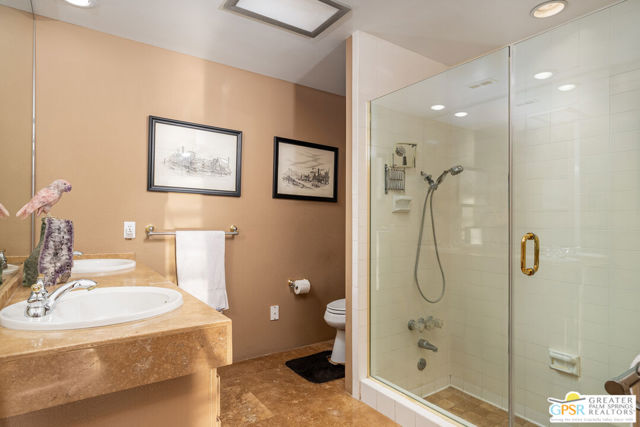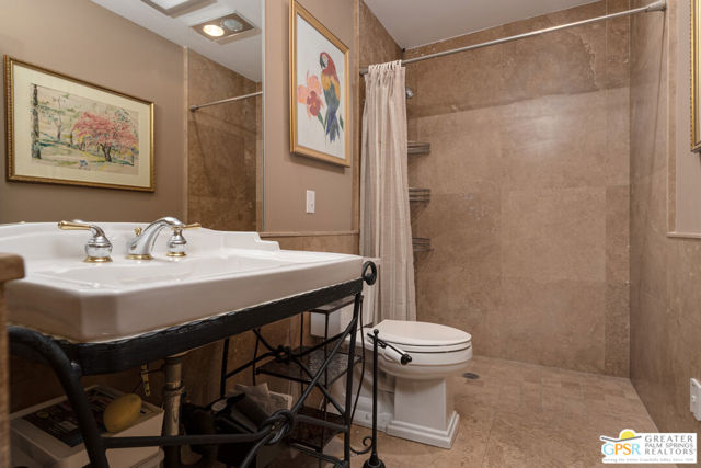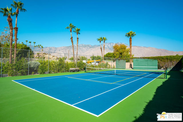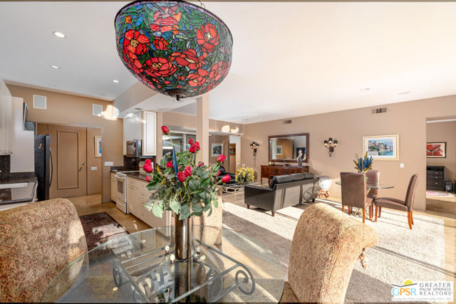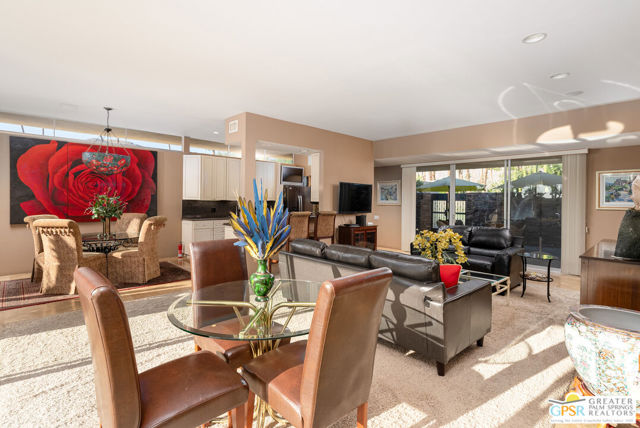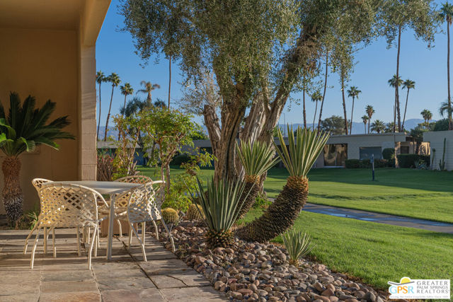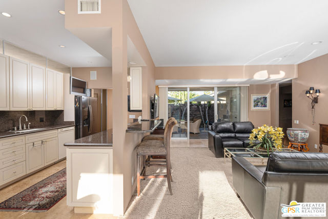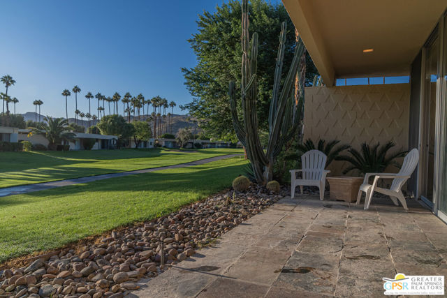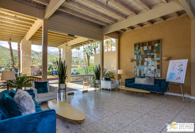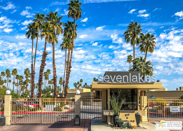 Built in 1967 and designed by Palm Springs architect Richard Harrison, this two bedroom/ two bath home is located in the Seven Lakes Country Club on one of only four interior cul-du-sac streets. Situated with an east-west orientation, enjoy the views of lush greenery and the San Jacinto Mountains from the kitchen and living room. Large stone tile underscores one’s living throughout the entire home. Direct access to the exterior, private courtyard from the living room and guest bedroom allow for a fantastic flow of light. The master suite also enjoys exterior patio access while providing a perfect separation from guests with a relocated entryway. Renovated in true desert fashion, this home is ready to move-in and enjoy. Granite countertops compliment the light kitchen cabinetry. Additional features include 1-car garage, interior storage room, recessed lighting, built-in speakers, ceiling fans and beautifully adorned courtyard with metal entry doors. Seven Lakes amenities include: Clubhouse, Lounge, Restaurant, 18-hole golf, tennis court, 15 pools & spas. The only 24-hr guard gated community in Palm Springs.