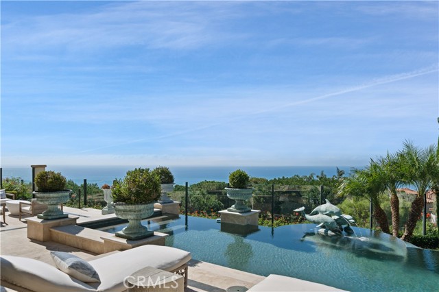 Nestled in the prestigious enclave of Newport Coast, this beautiful ocean-facing estate captures breathtaking panoramic views of the Pacific Ocean, Catalina Island, and the pristine coastline from its rare front-row vantage point. This exquisite residence at 16 Sail Vista offers a rare opportunity to experience Southern California living at its finest. With meticulous attention to detail, this architectural masterpiece spans over 5,300 square feet for a grand total of approx. 11,900 square feet. of developed property space. From the moment you step inside, you’ll be greeted by an abundance of natural light, high ceilings, and a layout designed for both comfort and entertainment. The spacious living areas seamlessly connect to the outdoor terrace, creating a seamless transition between indoor and outdoor living. The gourmet kitchen is a culinary haven, equipped with top-of-the-line appliances, custom cabinetry, and a center island perfect for both cooking and gathering. Enjoy your meals in the formal dining area with its own impressive views or dine al fresco on the expansive terrace as the sun sets over the horizon. This stunning architectural masterpiece offers 4-bedroom suites, an office or optional 5th guest room. Each of the bedrooms in this home is a sanctuary of style and tranquility, boasting ample space, bathrooms, and stunning vistas. The elegant master suite is a true retreat which has a custom fireplace mantle, coffee bar, built-in audio & video, dual master closets, and, of course, those magnificent ocean views. The property features zero edge infinity pool, spa, lush landscaping, and an outdoor dining area, creating the perfect setting for relaxation or hosting guests. Conveniently located in the heart of Newport Coast, this residence offers proximity to world-class beaches, upscale shopping, and award-winning schools. With a variety of recreational opportunities and cultural attractions just moments, 16 Sail Vista is a place where every day feels like a vacation.