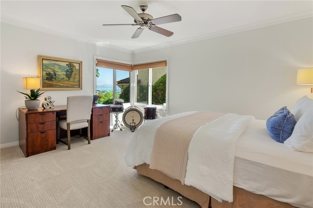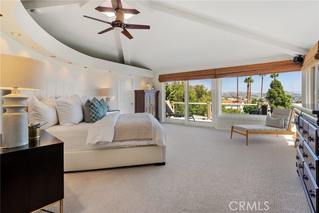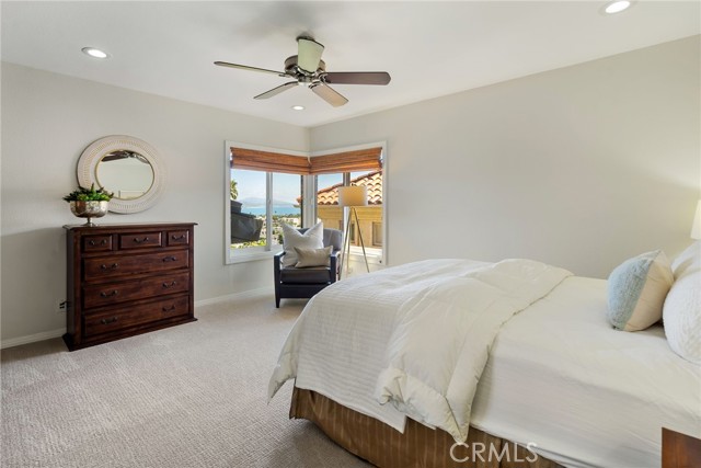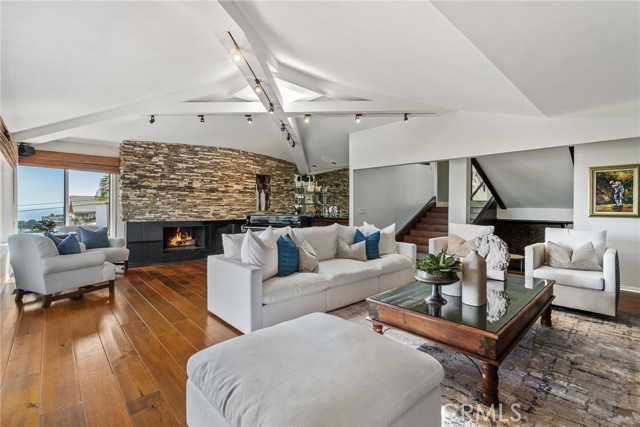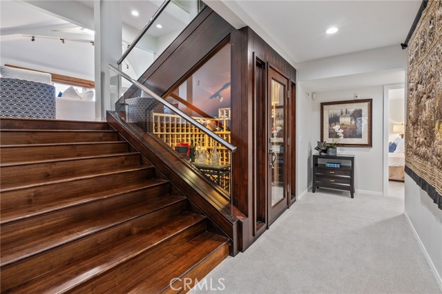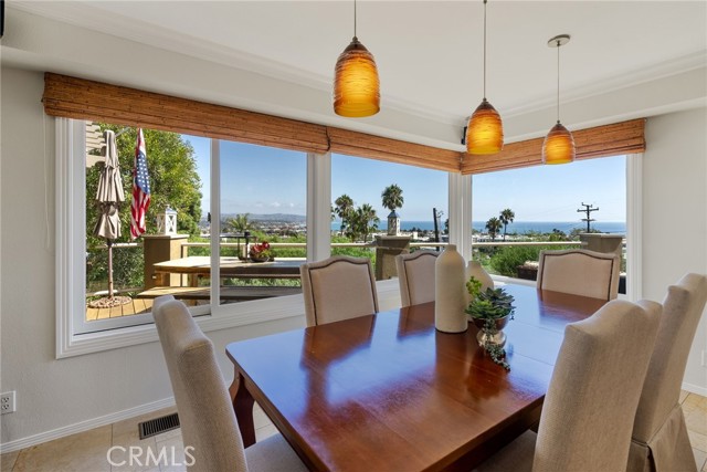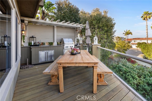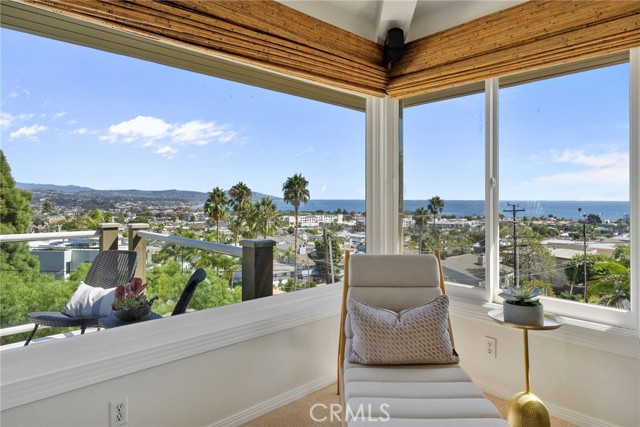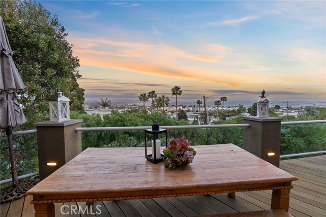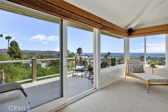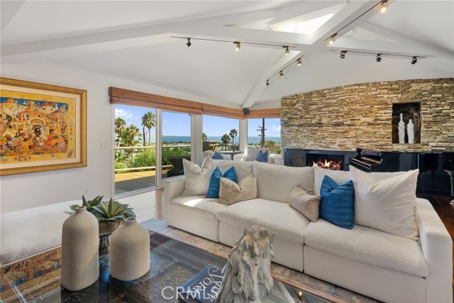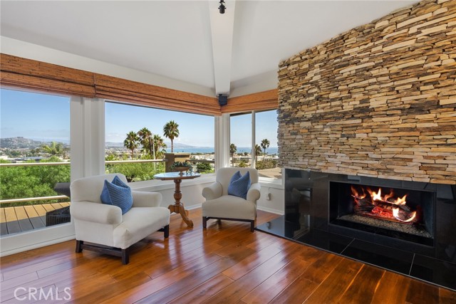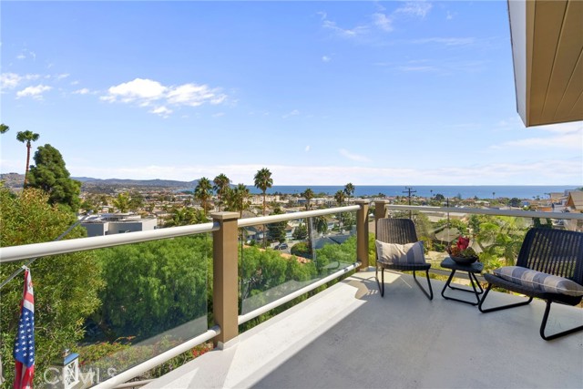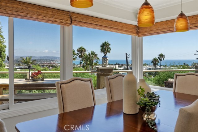 Incredible Lantern Village home with stunning panoramic ocean, coastal, and city lights views. A home with a true sense of warmth that is not to be missed. Featuring four bedrooms, a large office with its own entrance that could easily be a 5th bedroom or guest suite, an additional mirror-walled bonus room/gym, a walk-in temperature-controlled wine room, a fully paid solar system, custom-built cabinets throughout, jetted outdoor spa, and 4,125 square feet of thoughtful living space with ocean views taking center stage from many areas of the home. rn rnUpon entering the main level, prepare to be swept away by the beautiful sights on show. The spacious and bright living room greets you with walnut hardwood flooring, a custom stack stone fireplace, a peaceful retreat area, a wet bar, and custom built-ins, leading to a large wrap-around ironwood deck, perfect for entertaining, lounging, enjoying a gentle summer breeze, and taking in the scenery. The main level boasts a beautiful gourmet kitchen with a walk-in pantry, top-of-the-line appliances, granite counters, a separate laundry room, and an open indoor dining area with an ocean-view backdrop.rn rnThe home’s top level is truly the cherry on top of this impressive floor plan, with sweeping coastal views greeting you as you arrive to a tranquil and separate primary suite with a private balcony. The sights and sounds of incredible sunrises will be worth waking up for. The primary suite highlights include an impressive wrap-around dual entry walk-in closet with vanity and an upgraded bathroom with a walk-in shower. rnrnAdditional highlights include a new tiled limestone entryway, dual-zoned heating and air, Conrad remote control blinds, recessed and track lighting, a two-car garage with ample storage, and mature landscaping surrounding the home. rn rnA property with great curb appeal and privacy on a street-to-street lot, with no homes directly in front or behind. Located on Blue Lantern, the second-highest street in the highly sought-after Lantern district, with direct access to Pacific Coast Highway and all Dana Point offers. Here you have a location within walking distance from a newly reimagined downtown featuring top restaurants and shopping, and you are just minutes from Dana Point harbor and world-class beaches. A truly incredible home.