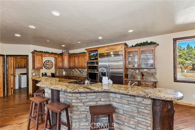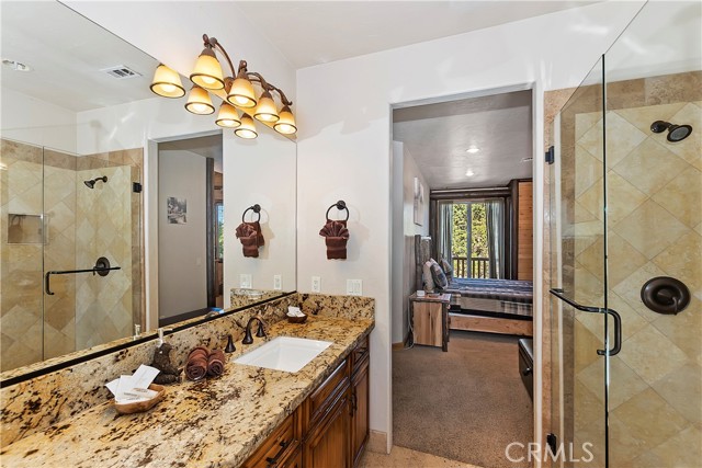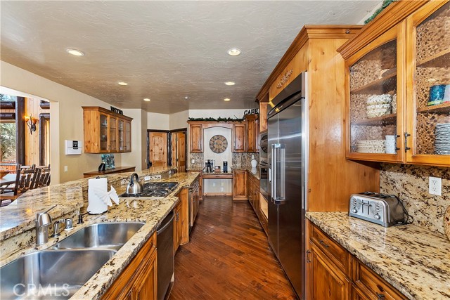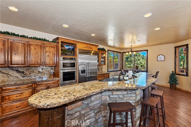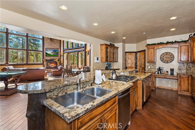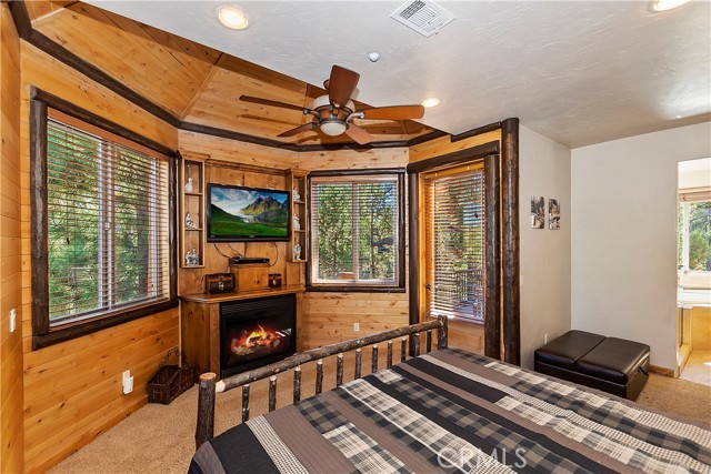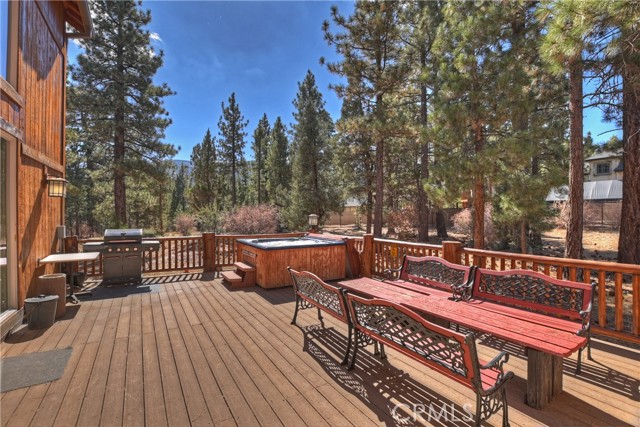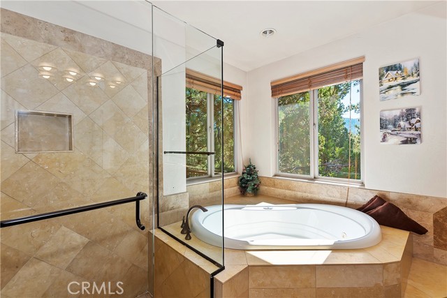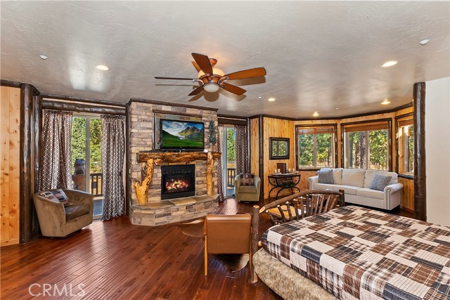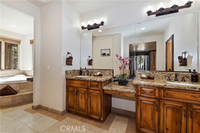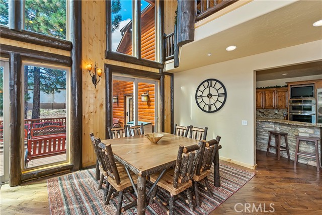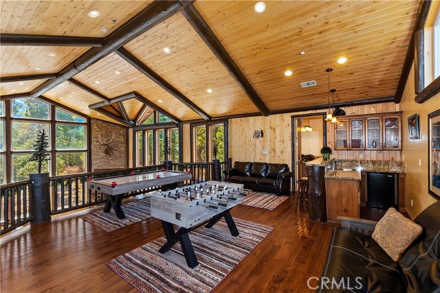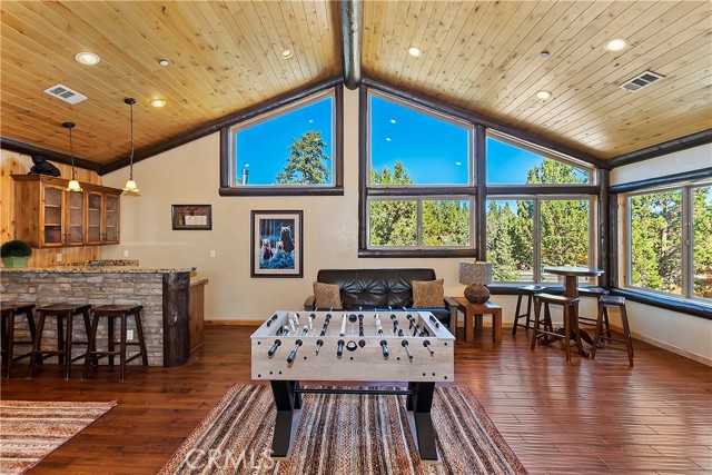 From the moment you arrive at this custom log style home you will know you have found the one ~ Open the door and be greeted by soaring high ceilings and log accents throughout ~ The abundant windows are ideal for watching the snow fall while listening to the crackling fire ~ The flow of the open floor plan is designed for entertaining ~ Gather with friends for a holiday feast cooked in your gourmet kitchen, then ascend to the loft bar for after dinner cocktails and games ~ When it’s time to relax slip outside for a soak in the spa and take in the stars, then retreat to your master suite complete with a gorgeous fireplace, sitting area, walk in shower, soaking tub, enormous walk in closet and a private deck ~ There are three more bedrooms, one is a second master suite complete with a fireplace and private balcony, and a total of six bathrooms to accommodate all of your loved ones ~ Are you a car lover? You will be thrilled with the 5 car garage ~ All of this sets on over an acre of pure bliss in the desired neighborhood of Meadow Brook Estates ~ Just ten minutes to the heart of Big Bear Lake but far enough off the main road so you won’t hear the noise of traffic ~ Just take a deep breath of the freshest air, sit back and relax ~ You can only hear the sound of the wind.