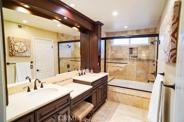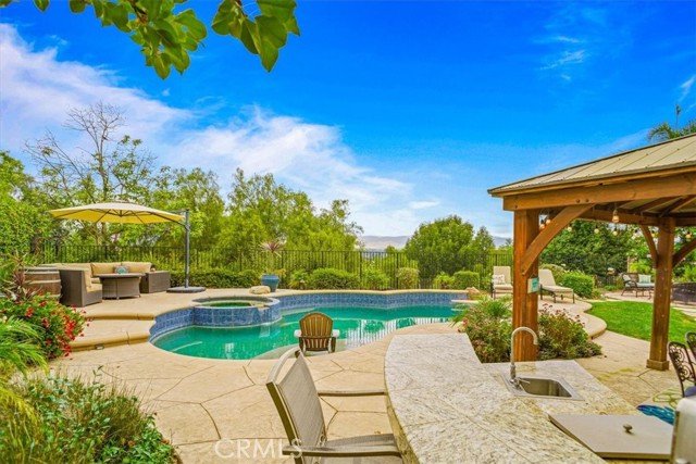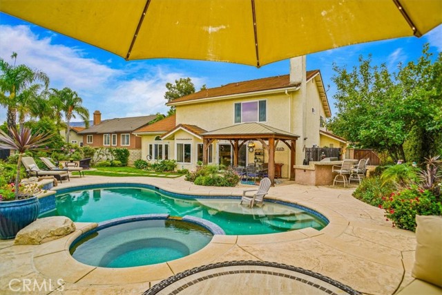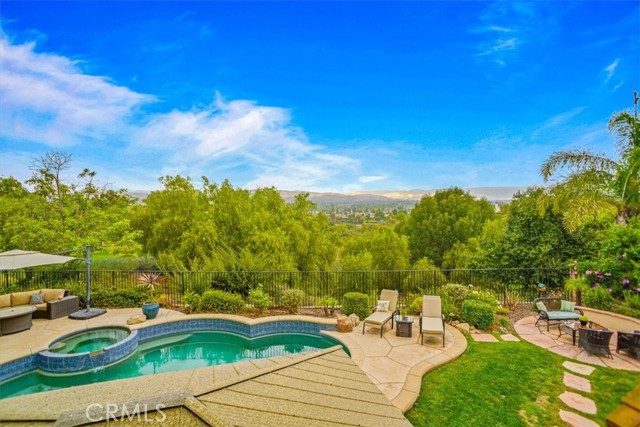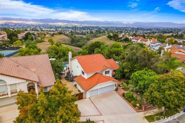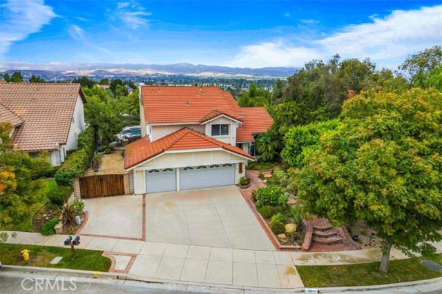 Be Ready to Fall in LOVE!!! Spectacular VIEW home situated on a wonderful cul-de-sac street in the highly desirable and sought after community of Oakridge Estates in Simi Valley, within minutes to parks, hiking trails, shopping & dining at the Simi Town Center and easy access to the 118 or 23 freeways – it’s TRULY the ONE you’ve been waiting for!!! This expansive, yet comfortable 4 bedroom, 3 bath, two story home boast over 2400 sq. ft. of open and light living space on a well-appointed 8,810 sq. ft. lot with an entertainer’s rear yard and sparkling pool & spa – the perfect place for spending time with family and friends hosting BBQs and social gatherings. Upon entering the double door entry, you are greeted by the warmth of the beautiful engineered wood flooring, volume ceilings, crown moldings, smooth ceilings, recessed lighting, a cozy fireplace in the family room and a wonderful living and formal dining room. The updated cook’s kitchen features granite counter tops, beautiful stone tile flooring, great cabinet space with pantry and pull-outs, breakfast nook, quality stainless steel appliances and overlooks the beautiful rear grounds. Large main floor bedroom with sliding glass door to side yard is perfect for a home office, gym or guest bedroom, plus there is an adjacent ¾ bathroom. Upstairs boasts a spacious primary suite with vaulted ceiling, his & her closets with custom organizer (one is a walk-in) and an en suite remodeled bath with custom built vanity, dual sinks, stone counters and a custom tub/shower. Secondary bedrooms are ample sized and are serviced by another beautifully remodeled bathroom. Rear yard is an Entertainers Paradise and boasts a pebbled pool & spa, custom BBQ center & covered patio area, an apple tree and a manicured lawn – and again that AMAZING VIEW! This special home offers tons of storage, indoor laundry, a direct access 3 car garage with a large driveway, plus potential RV access. Community HOA tennis courts and a sports courts are just a few steps away. This one is sure not to last long, see it today!