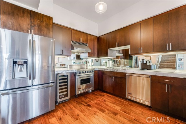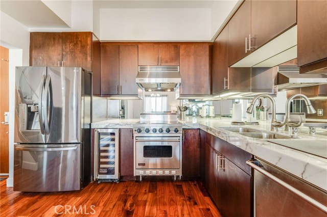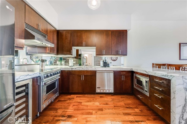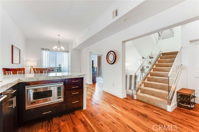 Perched atop the prestigious Aqua Towers, this rare penthouse residence offers an extraordinary opportunity to embrace the beauty of Long Beach. Located on the 18th and 19th floors, this penthouse provides breathtaking panoramic views of the San Gabriel Mountains and the dazzling downtown skyline. Step into a world of luxury that feels like a perpetual vacation. The double balcony extending from the dining and living areas ensures that you’ll never tire of the ever-changing scenery. At night, the city lights create a spectacular and romantic ambiance that is simply unmatched. This penthouse boasts an open layout with ten-foot high ceilings, crown moldings, and an abundance of natural light pouring in from all directions. The chef’s kitchen features high-end appliances, rich dark wood cabinets complemented by marble countertops, a convenient wine cooler, and a stylish bar area. Clever design touches abound, including a custom closet under the stairs, a full-size laundry area, and custom window treatments. The primary bedroom is a retreat in itself, complete with an enormous walk-in closet thoughtfully equipped with organizers. The ensuite bathroom offers a spa-like experience with double sinks, a spacious shower, and a rejuvenating soaking tub. Recently refinished hardwood flooring, modern lighting fixtures, and central air and heating ensure that you’ll enjoy both style and comfort in this exceptional penthouse. This home comes with a rare private full-size garage as well as one additional parking space. The monthly HOA dues include water, trash, high-speed internet, 24/7 on-site concierge, two business centers, club room, fitness center, sauna, pool, spa, and BBQ area. This is your chance to own a piece of paradise high above the city, where every day is a celebration of luxurious living and breathtaking vistas. Don’t miss this rare opportunity to make this penthouse your own. Close to some of the best restaurants, bike paths, walking paths, museums, and shopping.