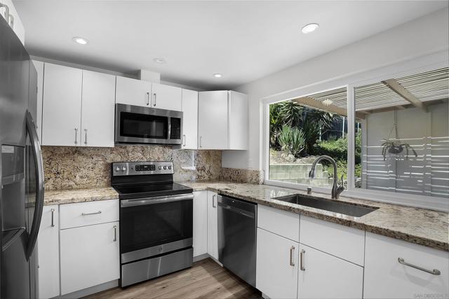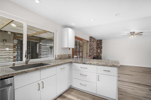 Open House Sat 12-3pm & Sun 12-3pm. Beautifully updated single-story residence with impressive curb appeal in the desirable Fletcher Hills neighborhood. A true highlight of this property is the permitted 500sf outbuilding in the backyard, presenting endless potential. Whether you envision an accessory dwelling unit (ADU) or a personal workshop, the choice is yours. As you step inside, be greeted by fresh paint, energy-efficient vinyl windows, and brand-new vinyl plank flooring that extends throughout the home. This 4-bedroom, 2-bath gem boasts a spacious living room ideal for relaxation, complemented by a formal dining area perfect for hosting dinners. The heart of the home, the updated kitchen, is a chef’s delight with white cabinets, granite countertops, and upgraded stainless steel appliances. A bright atmosphere is ensured by the large window that bathes the kitchen in natural sunlight. Adjacent to the kitchen, the family room offers a seamless flow with a cozy fireplace and sliding glass doors leading out to the fenced backyard featuring a drought-tolerant landscape with paver stone patio and artificial grass. Retreat to the spacious master bedroom, offering tranquility with its updated private bath. Plus, for added comfort, each bedroom is equipped with a new ceiling fan. Location is key, and this home does not disappoint. Situated close to shopping, dining, and freeways, you’re always just moments away from conveniences. Don’t miss this rare opportunity to own in a prime locale with countless upgrades and features. Your dream home awaits!