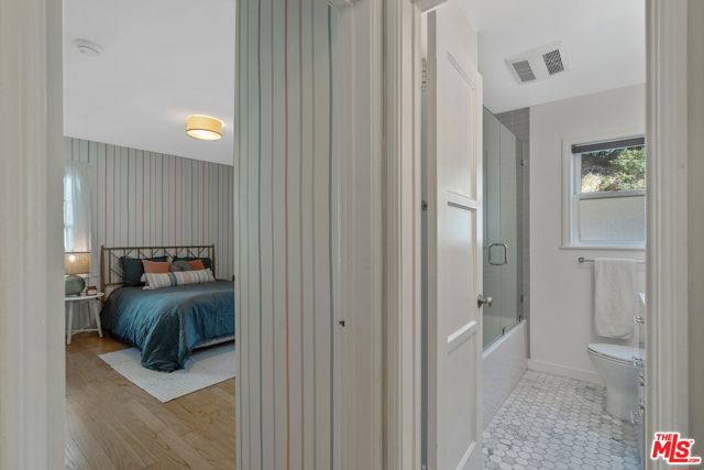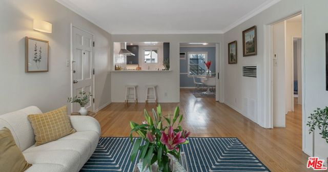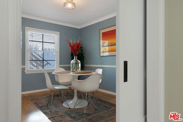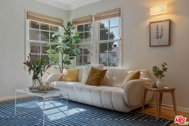 Character two bedroom one bath unit is a special townhome offering in Atwater Village. Updated kitchen and bath with timeless period details, newer energy efficient windows, hardwood floors and original moldings. Kitchen features hidden pantry closet, Viking professional range and laundry inside. Direct access, a sunlit living room that looks out to the courtyard, a formal dining room with custom farm doors for privacy makes it feel more like a single family home rather than a townhouse. There are 32 units in all and the units are separated into 8 four-plexes. Walk to Costco, coffee shops, bakeries, restaurants, a golf course and public transportation.