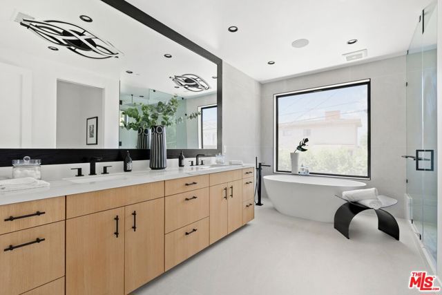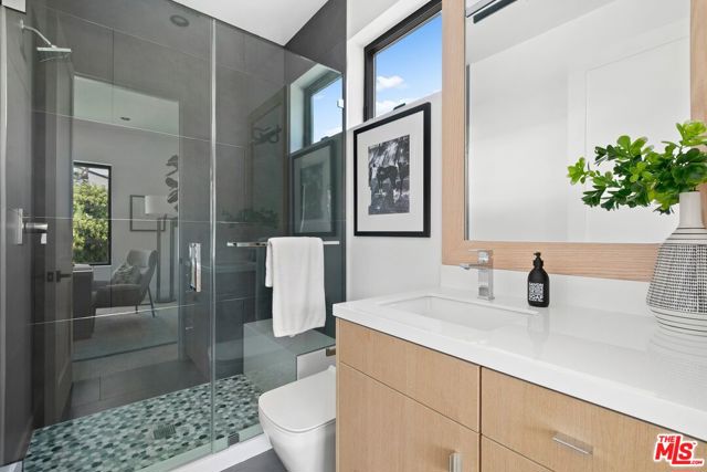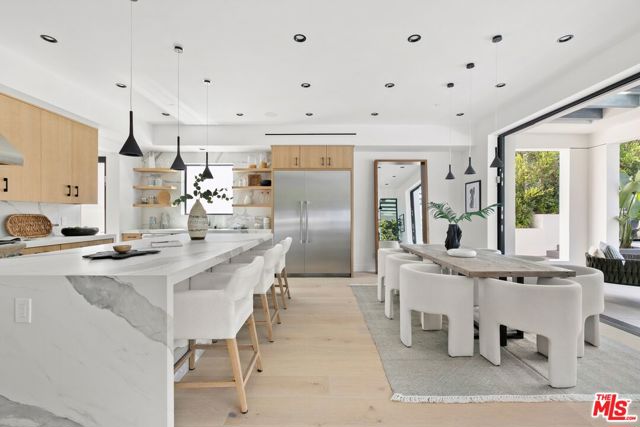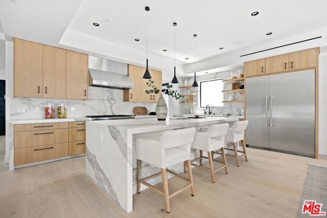 Completely Custom Modernist Dream Home! Located in the heart of Westside Village, this newly constructed 2-Story Modern is a true architectural masterpiece! Completed in 2023 with the finest of finishes and seamless floor plan perfect for modern day living, this home showcases an impressive open concept living area flooded with natural light from floor to ceiling Fleetwood doors opening to a captivating outdoor space. An enchanting entry way, flanked with a stunning glass encased wine bar leads to the impressive living room with handcrafted wood and stone embellished built-ins and a contemporary glass fireplace. The living room flows on to the state-of-the-art kitchen which is complete with custom cabinetry, a designer appliance package, including Wolf range and oversized waterfall edge stone center island opening to a gorgeous sun-filled dining area with lush backyard and pool views. The second story boasts a perfectly appointed master suite with high ceilings, envious tailor-made walk-in closet, luxurious spa-like glass and stone en-suite bath and spacious balcony designed for enjoying warm summer nights with tree top & city views. Three additional generous sized guest rooms each with their own sleek en-suite baths and gym/bonus room complete this truly outstanding property. The gated, private outdoor space is encompassed by mature and lush landscaped grounds, a sparkling pool with waterfall feature, modern dining terraces, stainless steel BBQ and surround sound speakers, creating the perfect entertainer’s space. Located in award winning Clover Avenue School District, near the new Google Campus, Century City Mall and world renowned restaurants and shops! Centrally located — 4miles to Beverly Hills, 6miles to Santa Monica/Beaches, 8miles to LAX, 10miles to Downtown and easy access to 405 and 10 Fwys.