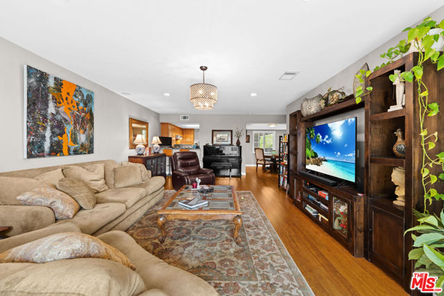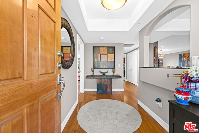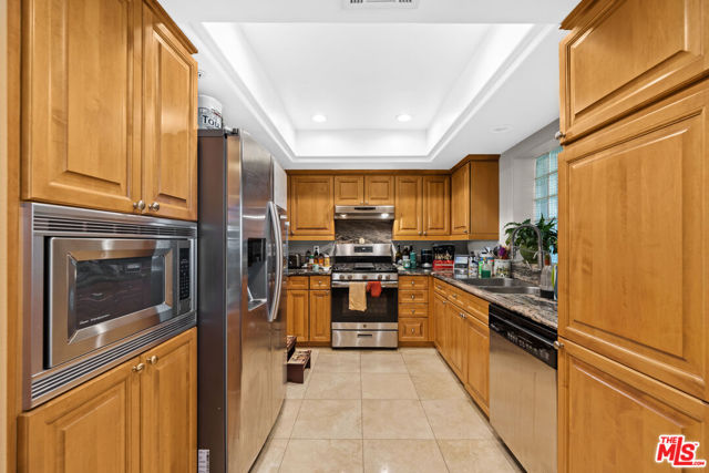 Experience the allure of this updated 2-bedroom, 2-bathroom Penthouse, graced by abundant natural light in a stunning Mediterranean-style building erected in 2001. Upon entering the formal foyer, discover an expansive open floor plan, where the living room beckons with a gas fireplace and access to a charming west-facing balcony. The adjacent dining area seamlessly flows into the gourmet kitchen, boasting a breakfast bar, stainless steel appliances, including a gas range and built-in microwave, and a cozy breakfast room or den. The generous master suite, a true retreat, boasts a sliding glass door leading to a balcony with panoramic treetop vistas, a custom-built walk-in closet, and an opulent marble-finished master bathroom with dual basins, a separate bathtub, and a shower. The second bedroom offers not one but two closets, providing ample storage space. A side-by-side laundry area complete with storage cabinets adds practicality to your daily life. Noteworthy features include resplendent hardwood flooring, recessed lighting, central air conditioning and heating, and a wired alarm system for added peace of mind. This pet-friendly abode includes earthquake insurance and covers water within its HOA dues, with the added convenience of guest parking. Nestled in an ideal locale just a few blocks away from Westwood Blvd’s vibrant retail and dining scene, as well as the prestigious UCLA and bustling Century City, this residence is also within the sought-after Westwood Charter School district. With every detail considered, this property is truly move-in ready, offering a unique opportunity to embrace the California lifestyle. Offers Due Tuesday October 10th at 5:00pm PST.