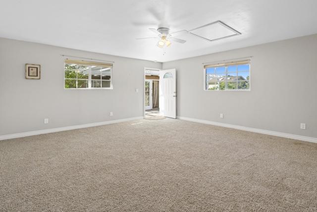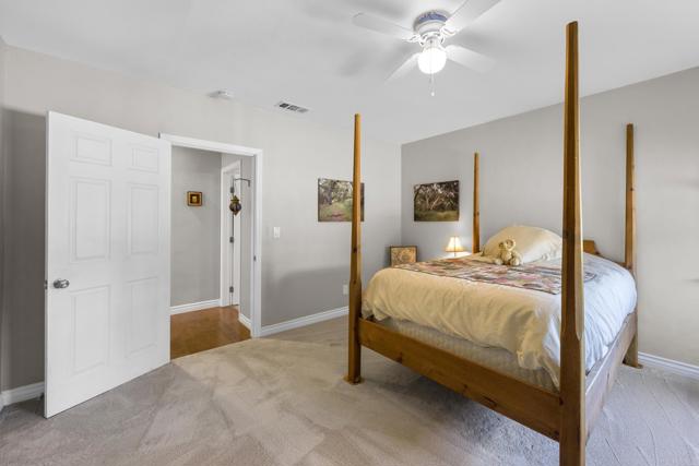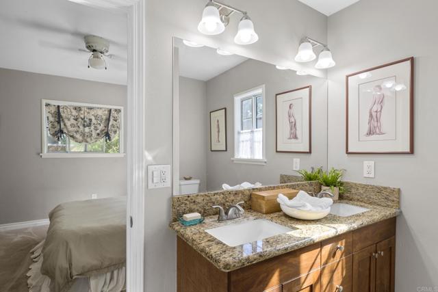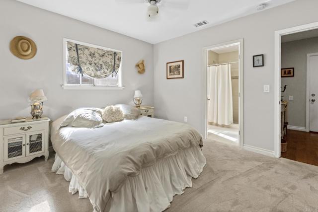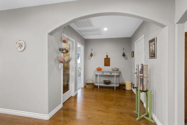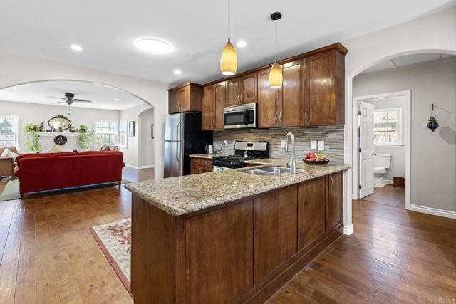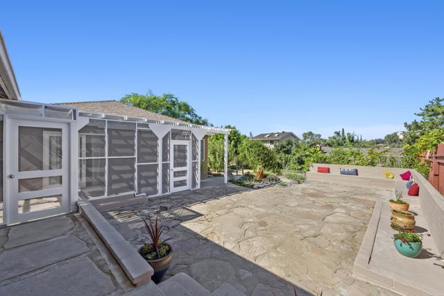 Updated single story on 1/3 acre lot! 1565 sf plus 325 sf detached bonus room, NO HOA, and infinite parking possibilities on the wrap-around driveway (RV’s, toy trailers, work vehicles, multiple cars, etc.). This meticulously designed home is located in one of the cities hidden enclaves just a few steps away from the Old Escondido Historic District and restaurants, pubs, eateries, coffee houses, downtown, Trader Joe’s and other shopping venues are just a few blocks away. Commuting is a breeze as the central location allows for quick access to interstate 15 or freeway 78. Step inside this impeccably maintained home and be greeted by the warmth of beautiful wood flooring that leads you to a spacious living room complete with cozy fireplace and loads of natural light. The generously sized dining room is perfect for hosting memorable gatherings, and the open concept gourmet kitchen features stainless-steel appliances, granite countertops, wood cabinetry, large walk-in pantry, and a gas stove. The 325 sf detached bonus room is limited only by your imagination and this thoughtfully designed floorplan offers an ideal layout with the primary bedroom and bath tucked away on one side of the house, providing a tranquil retreat, and the two additional oversized bedrooms are conveniently situated on the opposite side, ensuring peaceful nights and harmonious living. Baths have both been upgraded with dual sinks and granite counters. The guest bath impresses with a shower/tub combo and primary bath features a spa-like experience with a stunning custom tiled shower. Explore the outdoor space and discover an enormous flagstone patio, Artisan redwood gate, two flagstone pathways, a whimsical “Catio” (enclosed cat patio) mature producing fruit trees, organic gardens, water-wise landscaping and a composting station. Other features include: an attached 2-car garage, solar attic fan, whole house fan, solar tube lights, newly installed Mohawk stain-resistant pet friendly carpet with a transferable lifetime warranty. Hurry, won’t last!